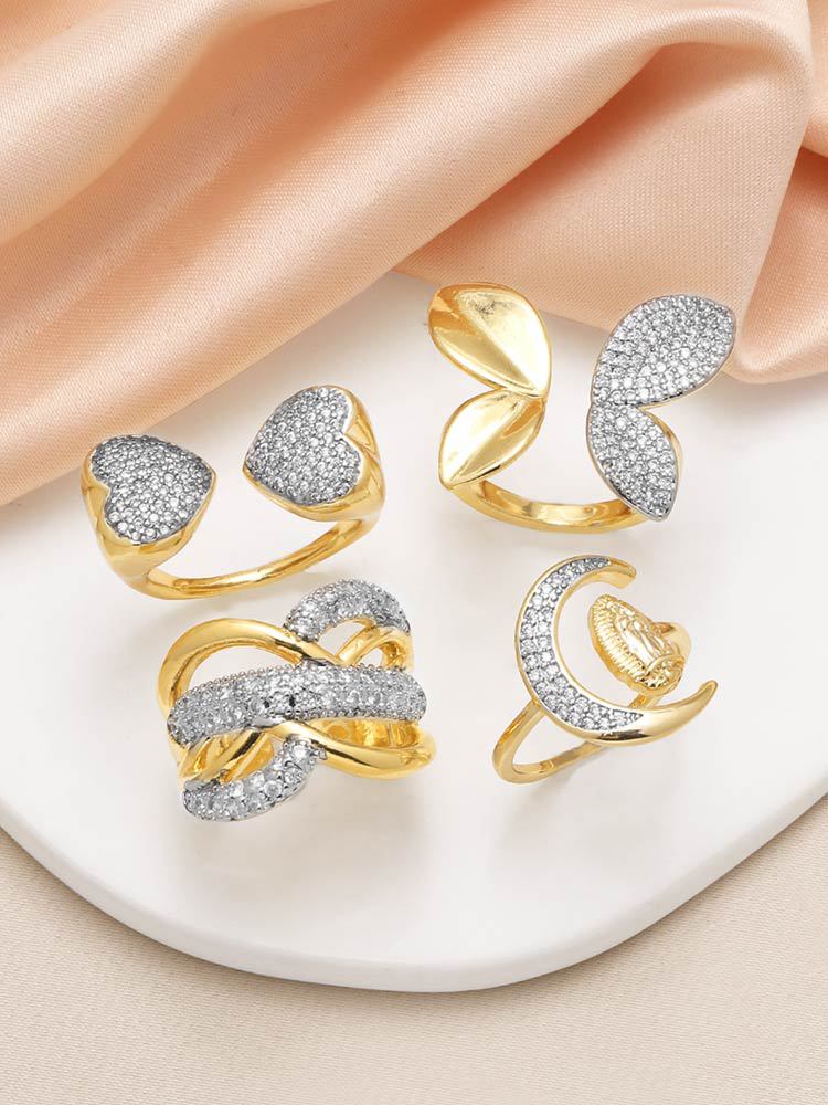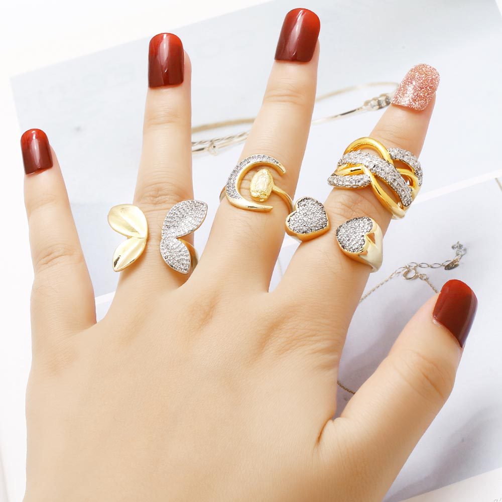 AS jewelry hot selling love butterfly ring female real gold plated full zircon open ring rih63