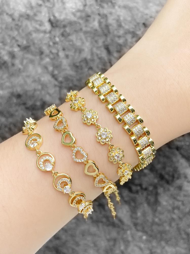 AS jewelry hot selling love full zircon bracelet copper plated real gold moon bracelet hand jewelry brb84