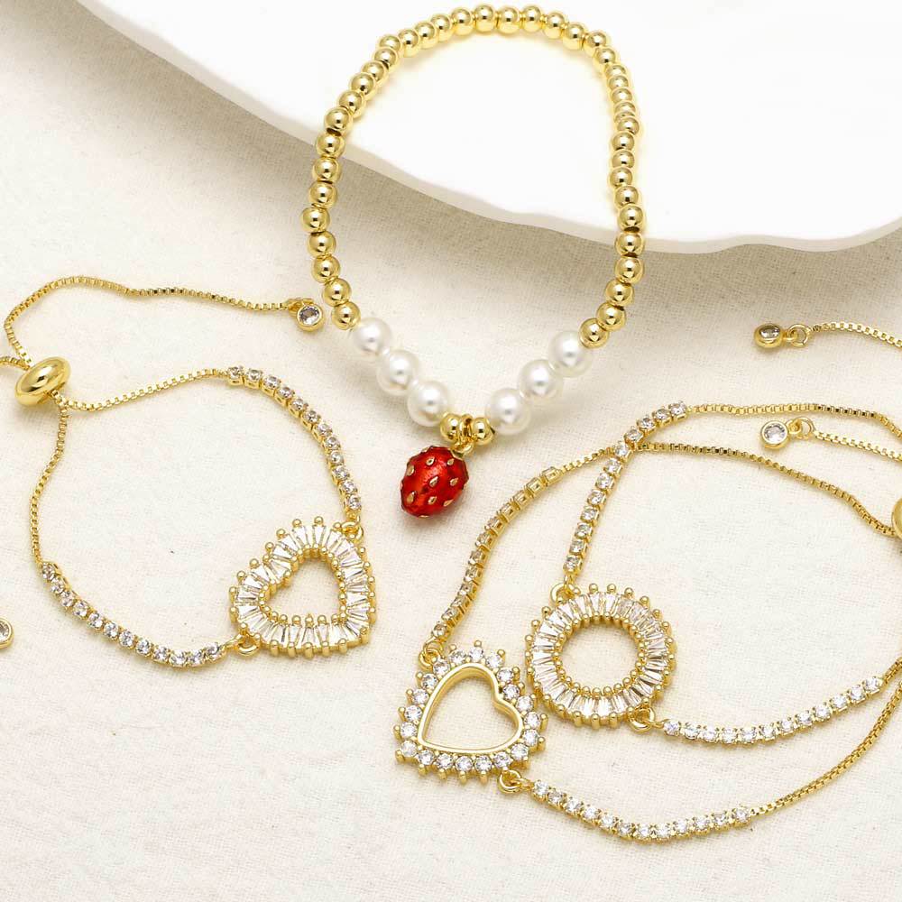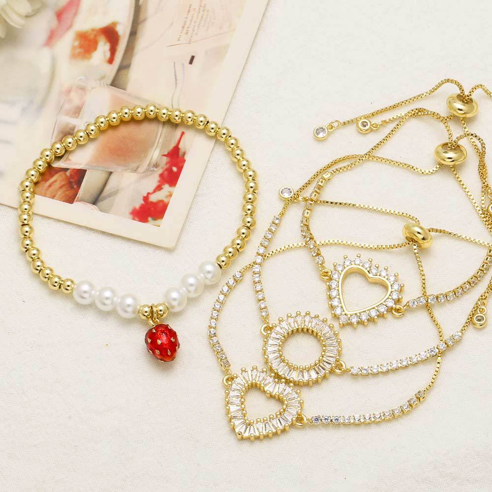 AS jewelry hot-selling love heart bracelet female copper plated 18k gold strawberry pearl bracelet brk40