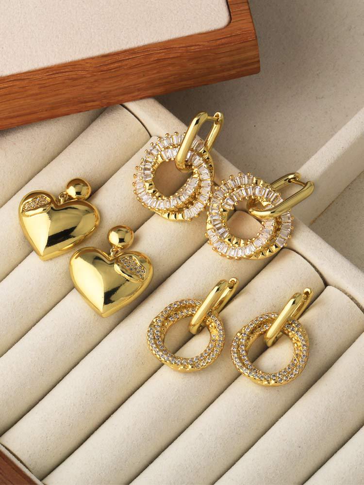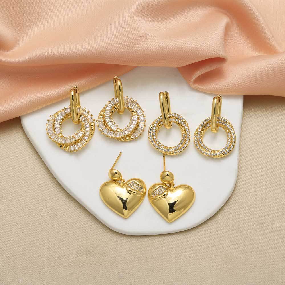 AS jewelry hot selling love heart earrings female gold-plated round beads zircon earrings earrings erz55
