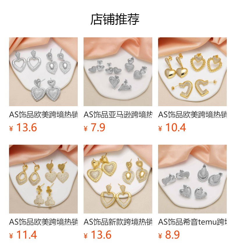AS jewelry hot selling love heart earrings women full zircon gold-plated geometric earrings earrings era397
