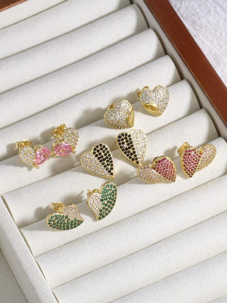 AS jewelry hot selling love heart inlaid colored zircon earrings earrings female err03
