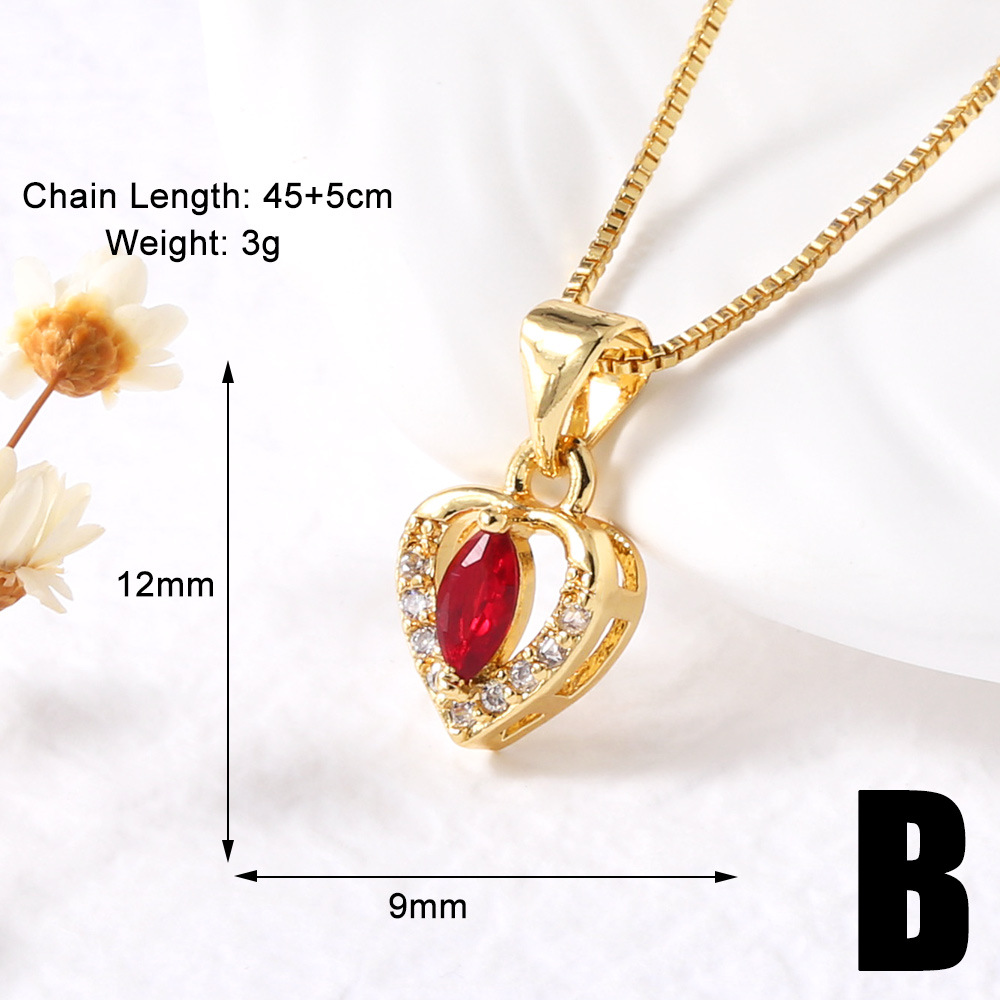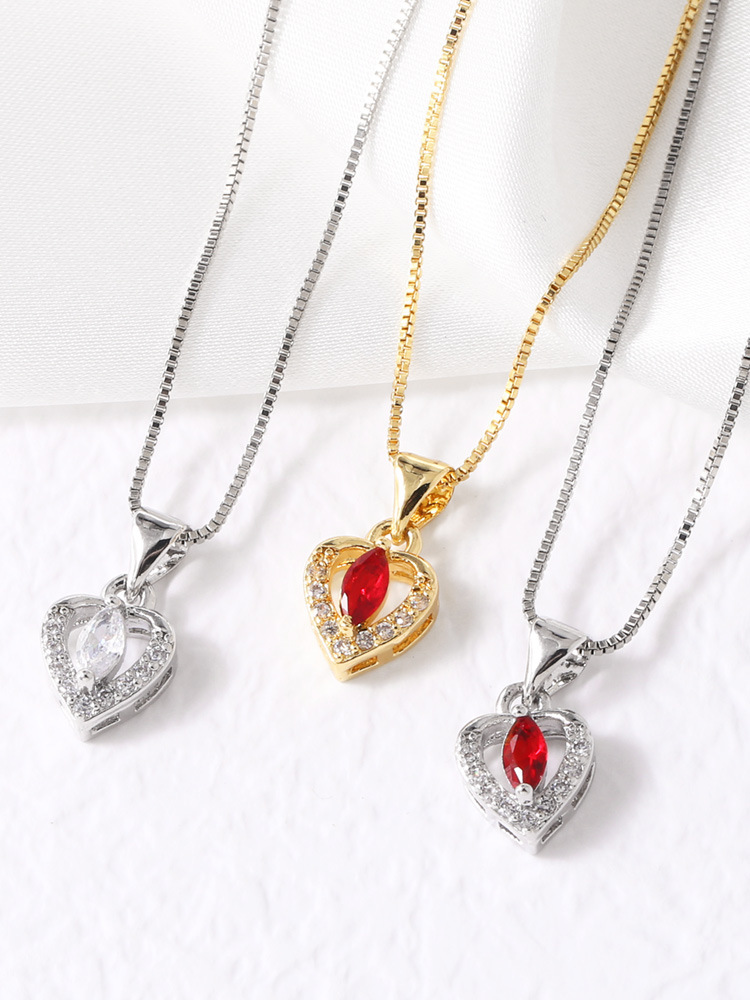 AS jewelry hot selling love heart shaped ruby pendant necklace female gold plated clavicle chain nkb184