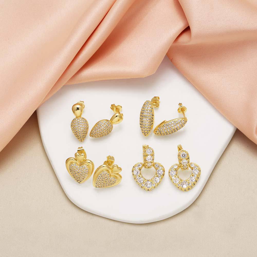 AS jewelry hot selling love peach heart earrings female gold-plated inlaid zircon heart-shaped earrings era392