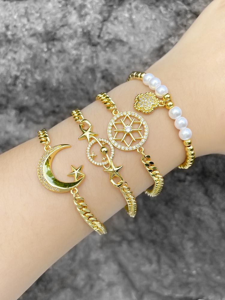 AS jewelry hot selling moon star pearl bracelet copper plated 18K inlaid zircon hand jewelry bra16