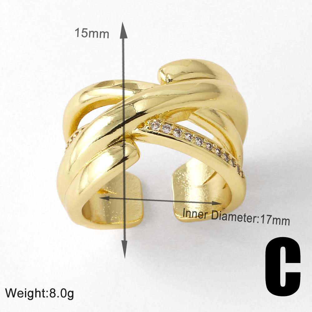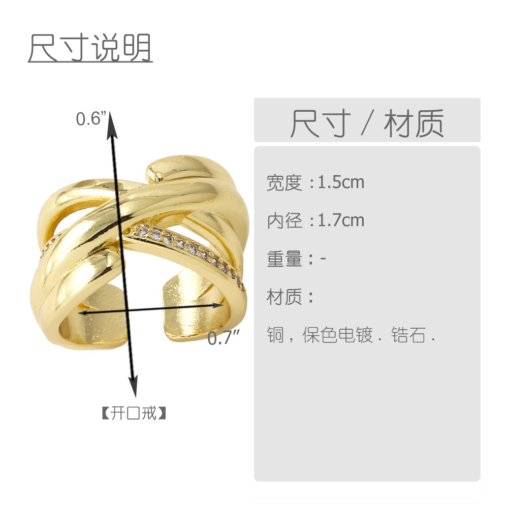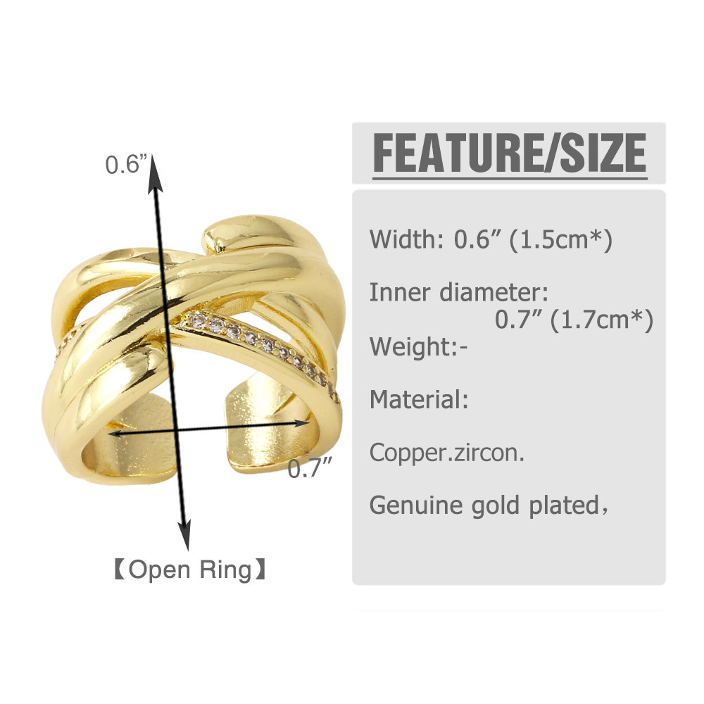 AS jewelry hot selling new cross irregular ring copper plated real gold inlaid zircon open ring rij64
