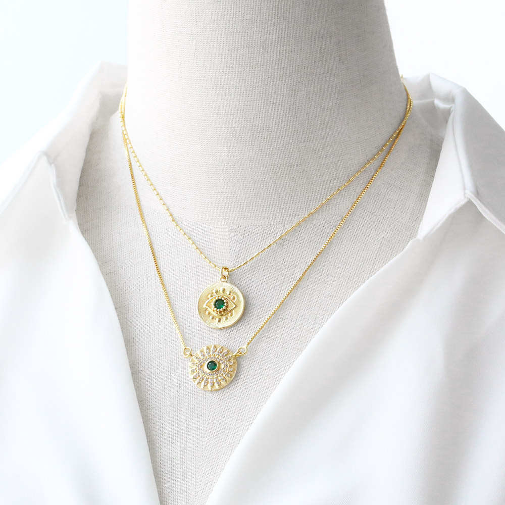 AS jewelry hot selling new love eye pendant necklace copper plated real gold clavicle chain nks94
