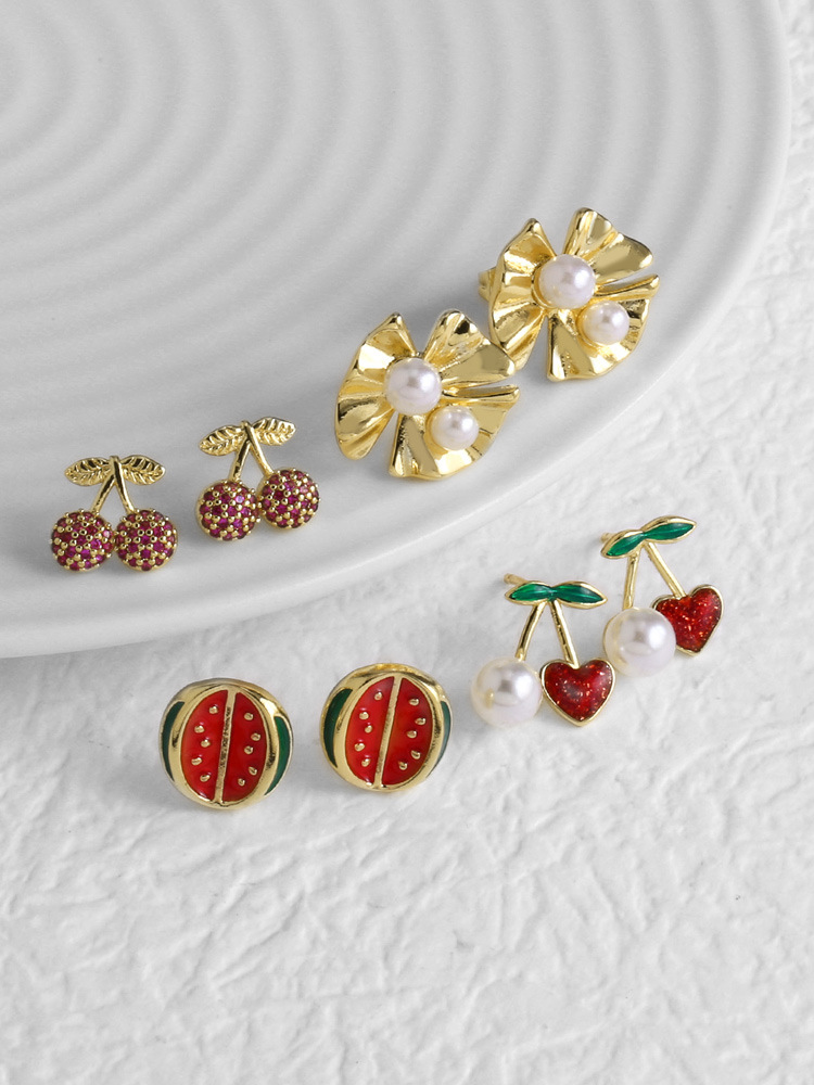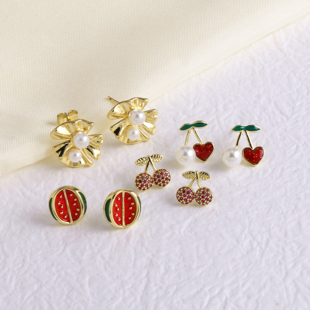 AS jewelry hot selling niche design fruit cherry earrings oil drop real gold plated watermelon earrings erz58
