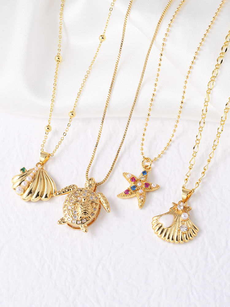 AS jewelry hot selling ocean design starfish pearl shell pendant necklace clavicle chain nkt83