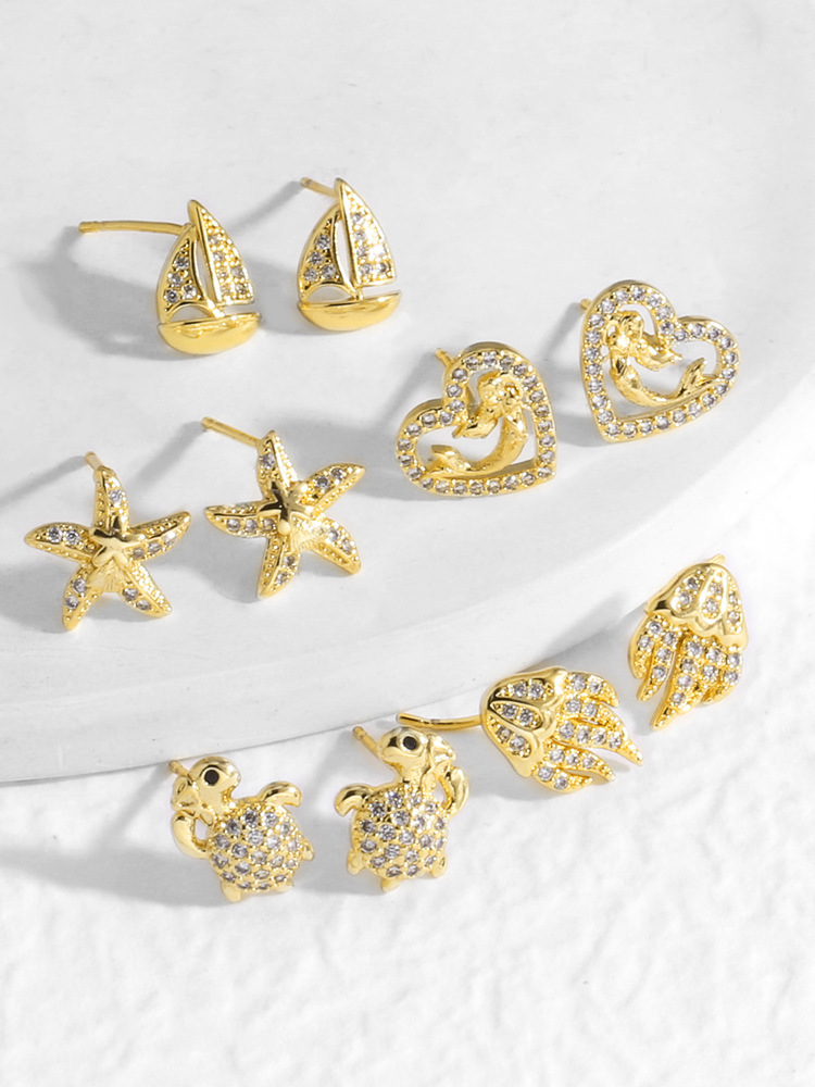 AS jewelry hot selling ocean style starfish love sailboat gold plated earrings earrings female ery43