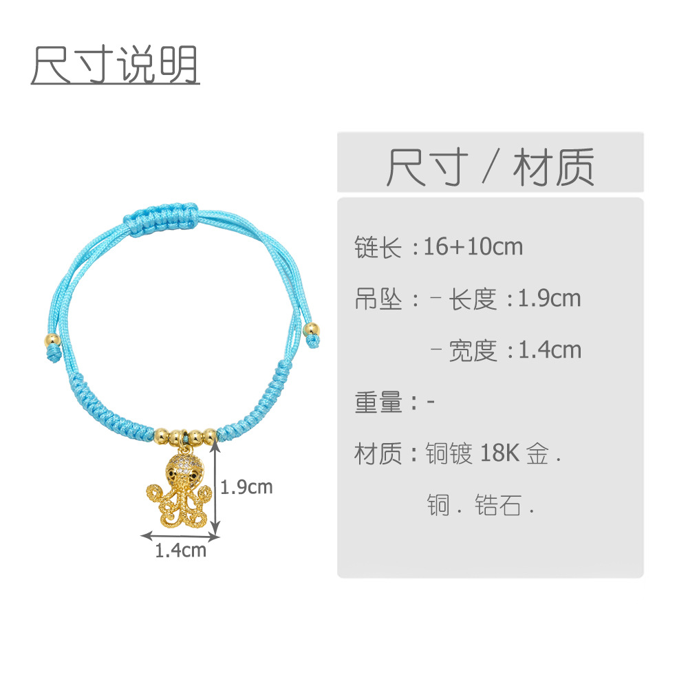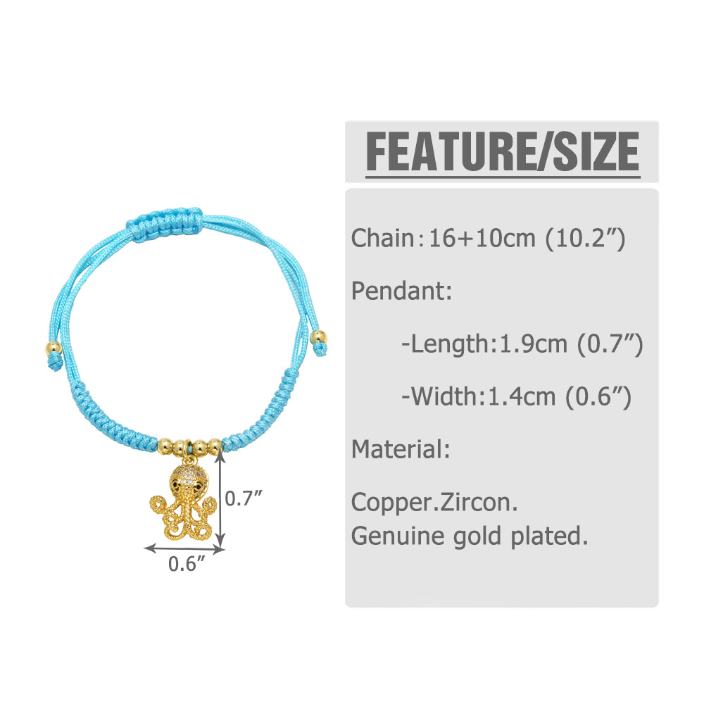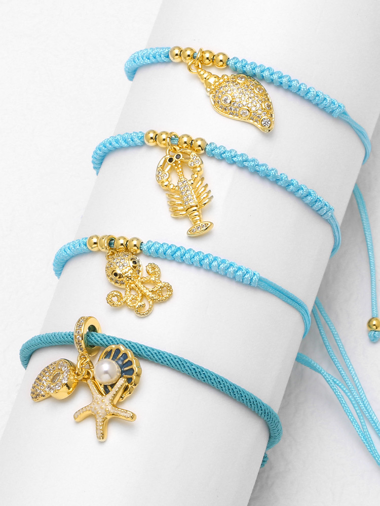 AS jewelry hot selling ocean style starfish octopus full zircon pendant bracelet hand rope brb30