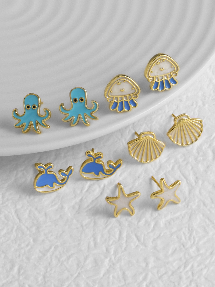 AS jewelry hot selling ocean wind drop oil shell octopus earrings copper plated 18k gold whale earrings erv42