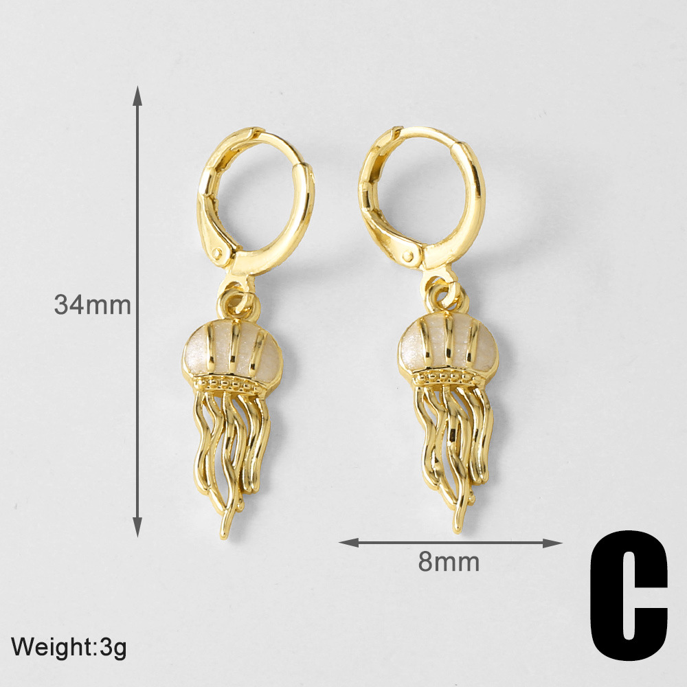 AS jewelry hot selling ocean wind drop oil shell octopus earrings copper plated 18k gold whale earrings erv42