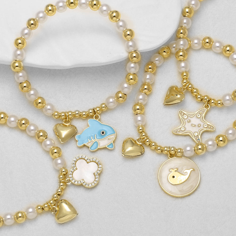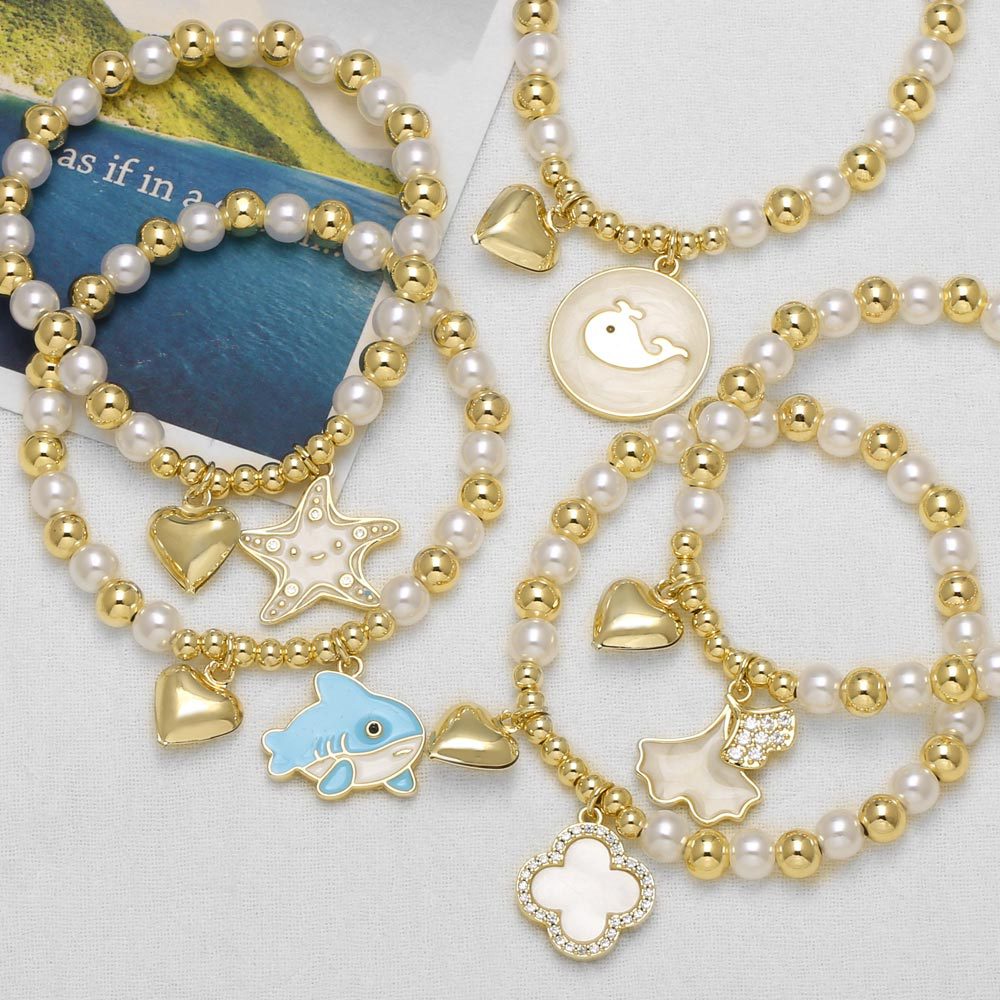 AS jewelry hot selling pearl bracelet love whale starfish pendant gold-plated bracelet brn45
