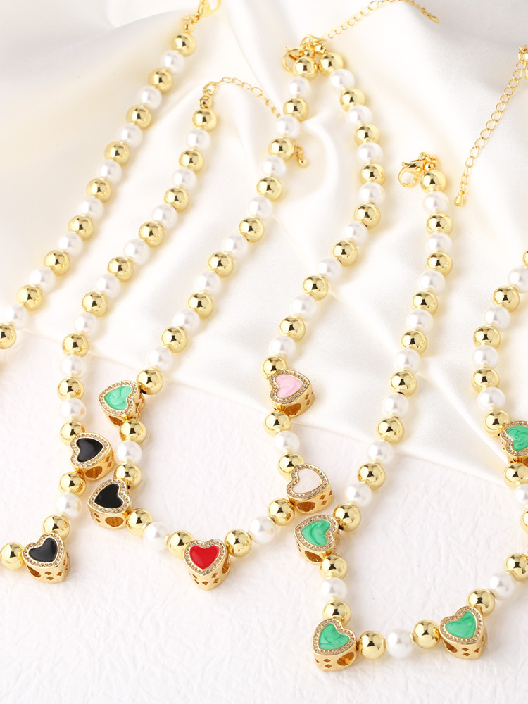 AS jewelry hot selling pearl color love beaded handmade necklace clavicle chain female nkb279