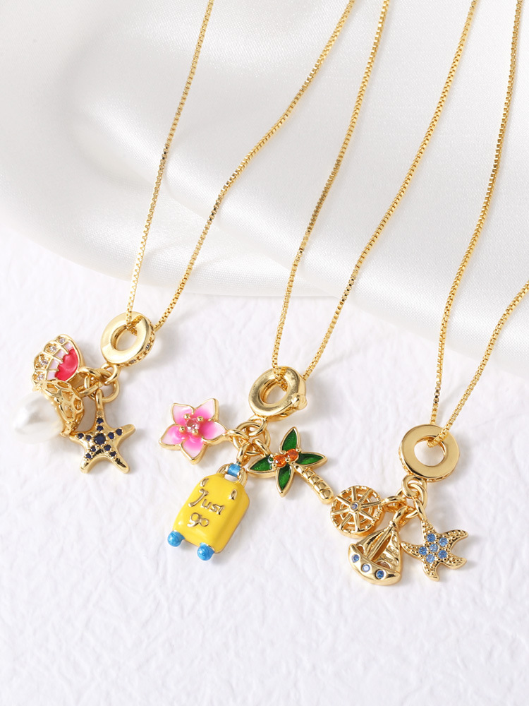 AS jewelry hot selling pearl flower starfish sailboat pendant necklace gold-plated clavicle chain nkb066
