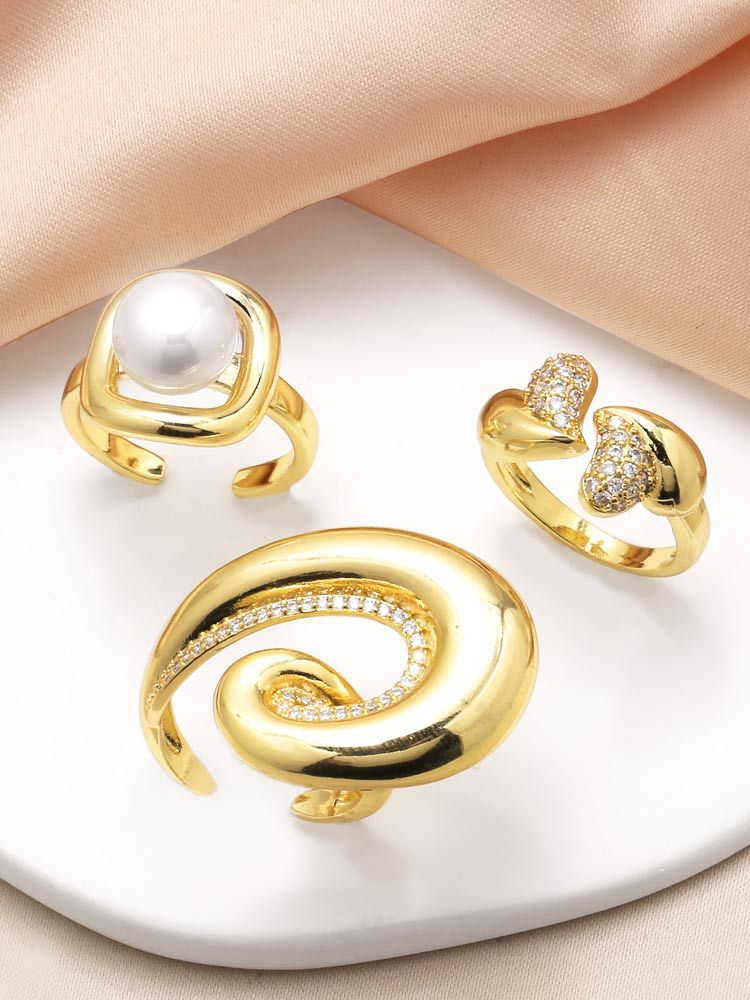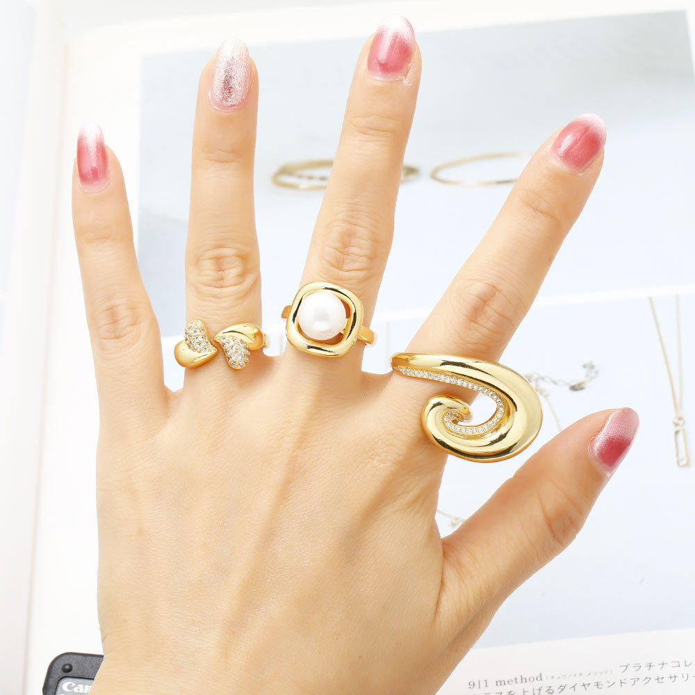 AS jewelry hot selling pearl love ring female smooth gold-plated zircon spiral ring rih50