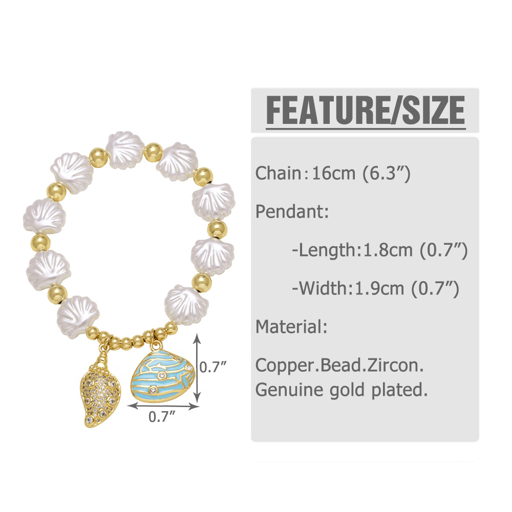 AS jewelry hot selling pearl shell ocean style conch starfish pendant bracelet brf68