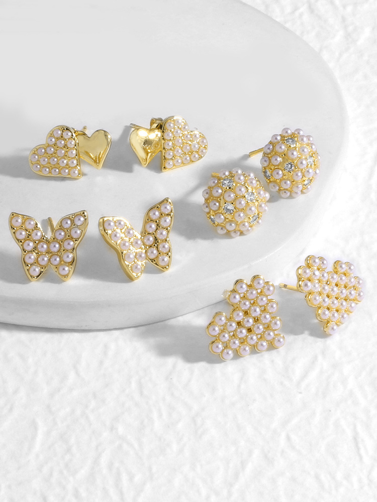 AS jewelry hot selling real gold-plated pearl butterfly heart-shaped earrings earrings era140 earrings