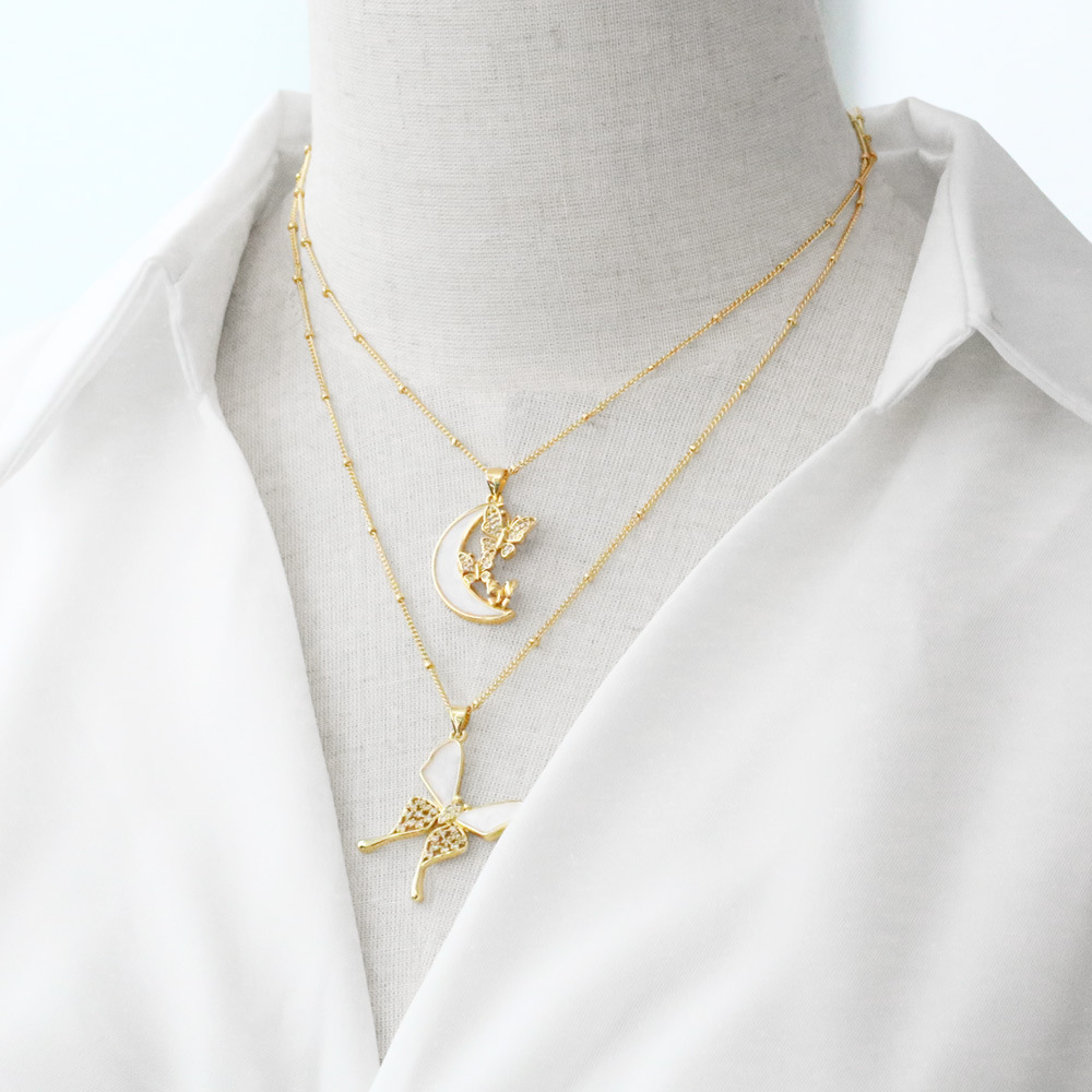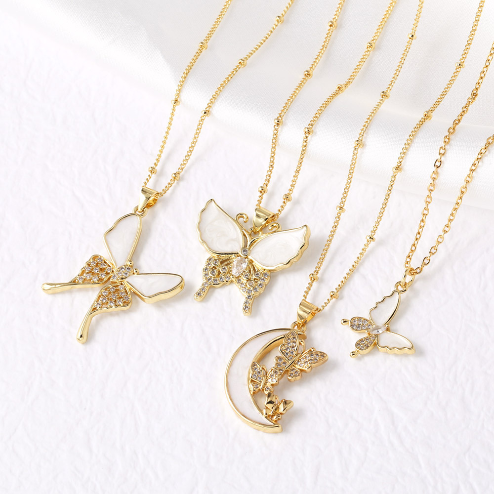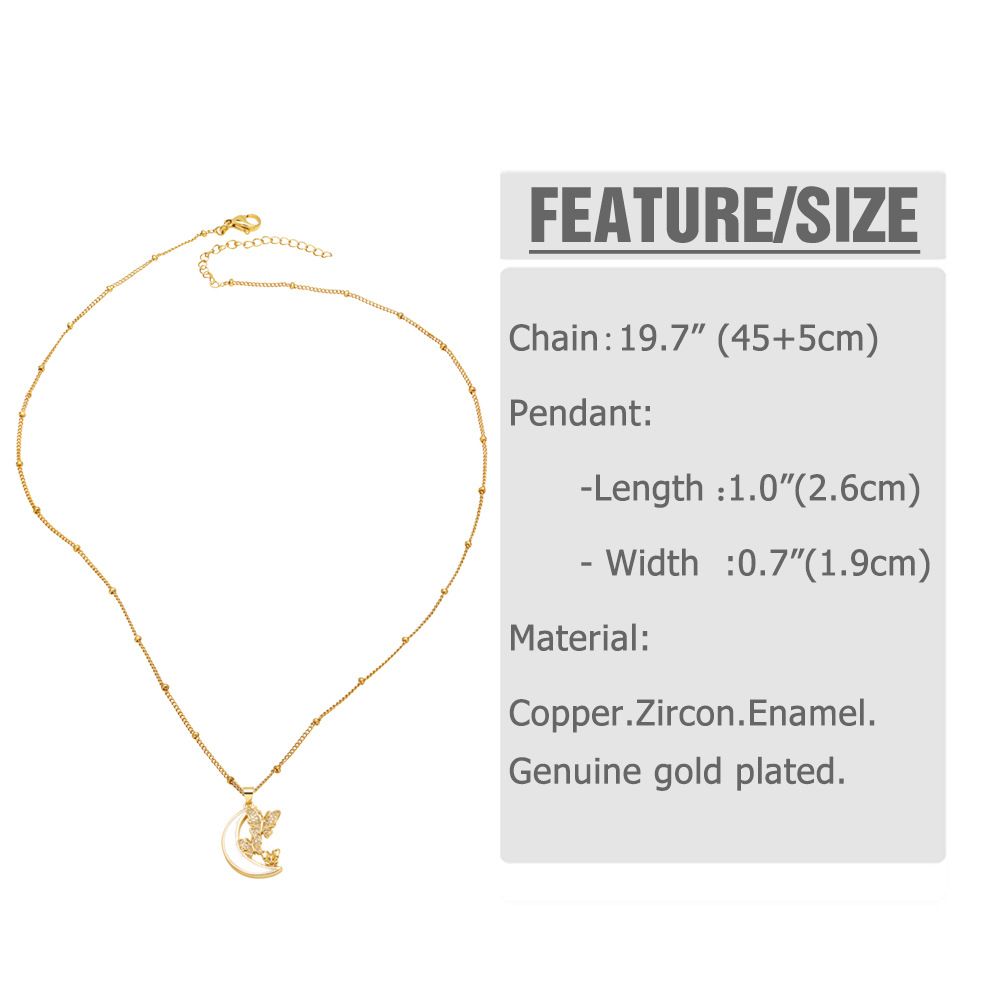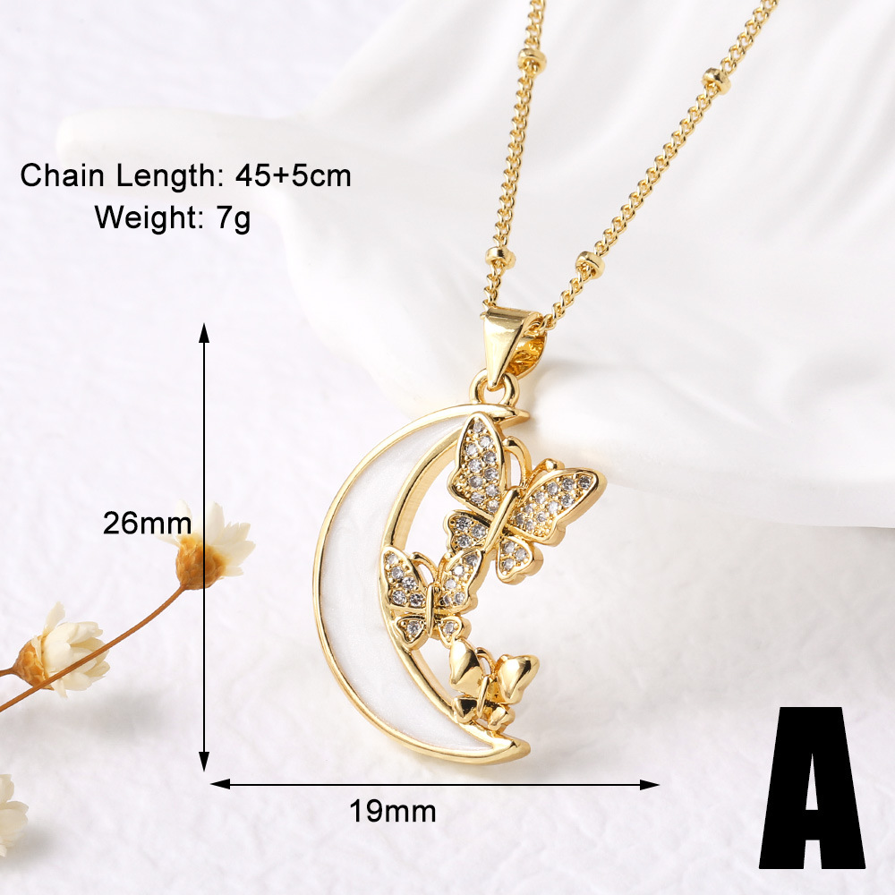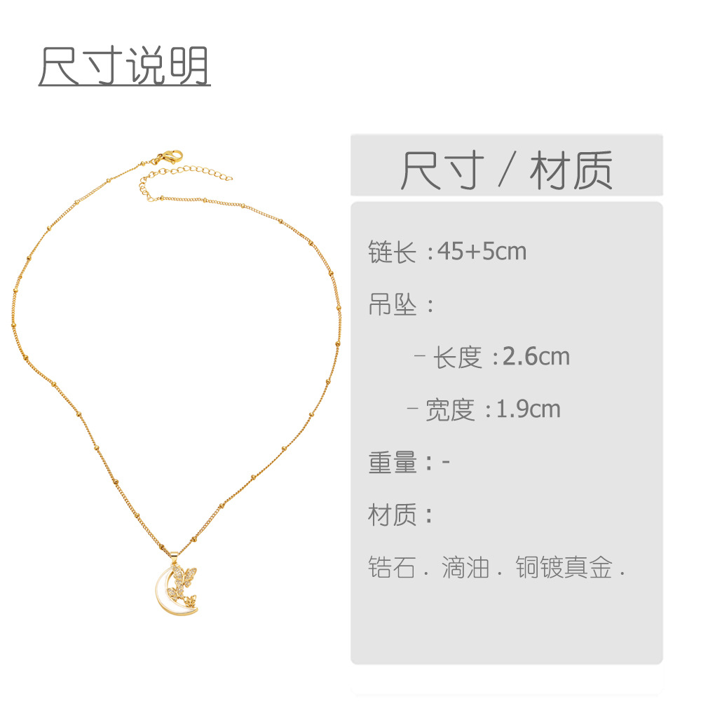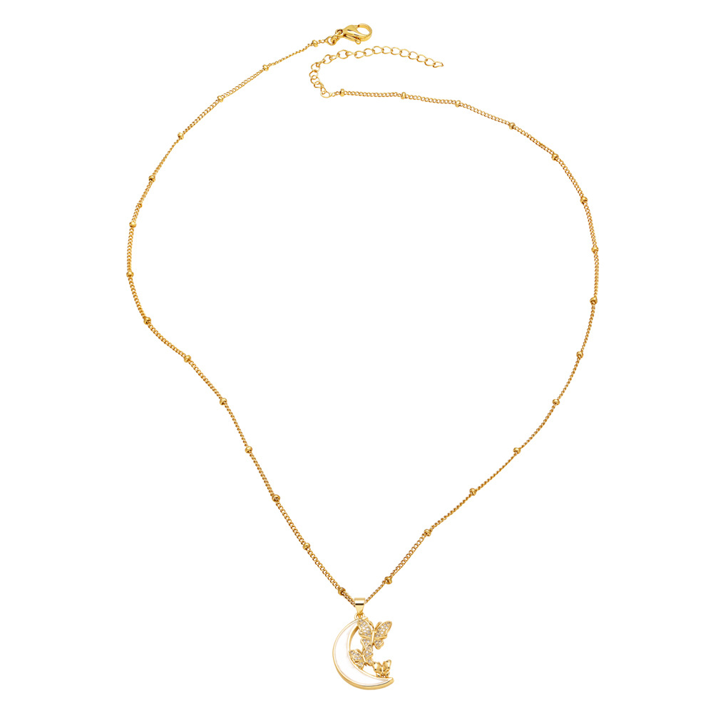 AS jewelry hot selling shell inlaid zircon butterfly moon pendant necklace clavicle chain female nkp89