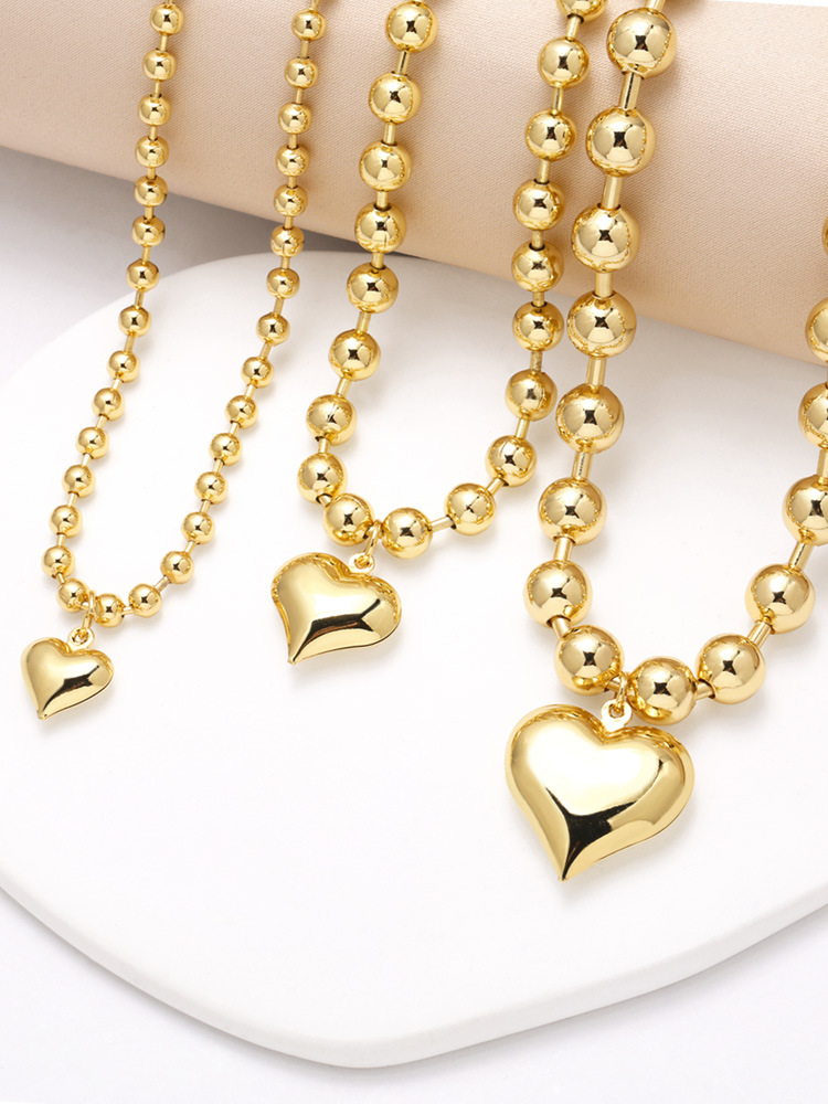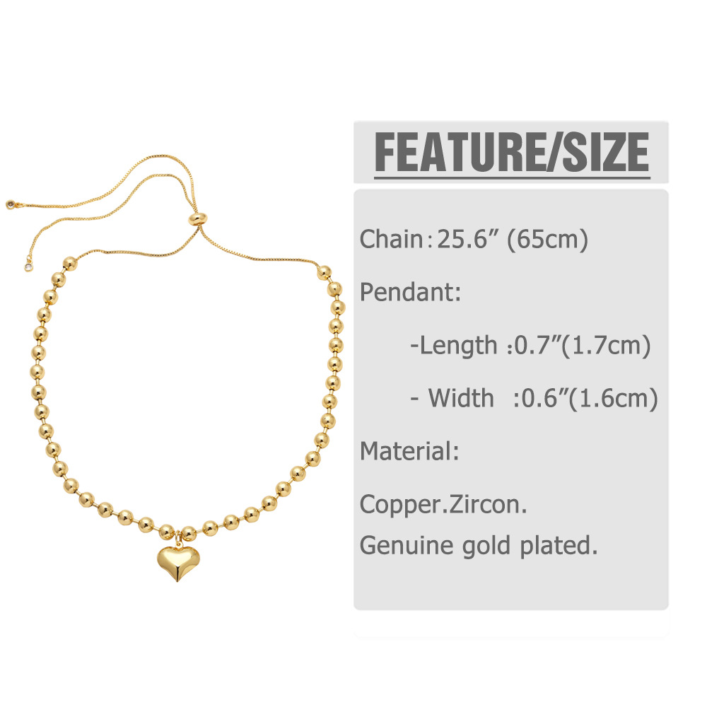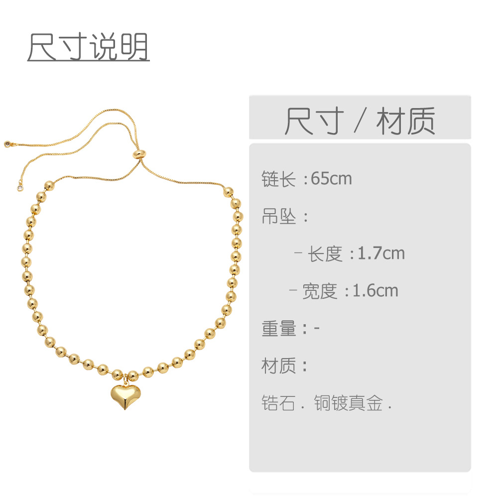 AS jewelry hot selling smooth heart-shaped necklace female copper plated 18k gold beaded clavicle chain nkp27