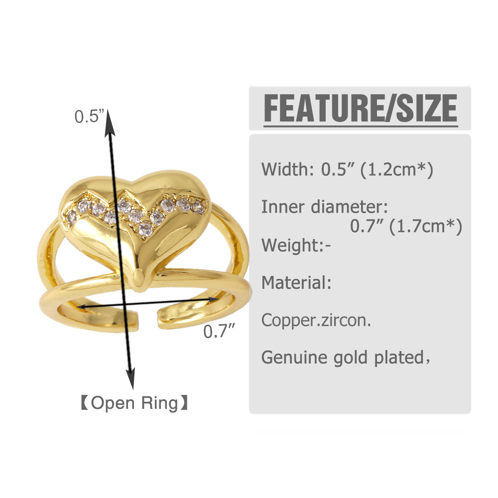 AS jewelry hot selling smooth love ring female gold-plated zircon open ring rim36