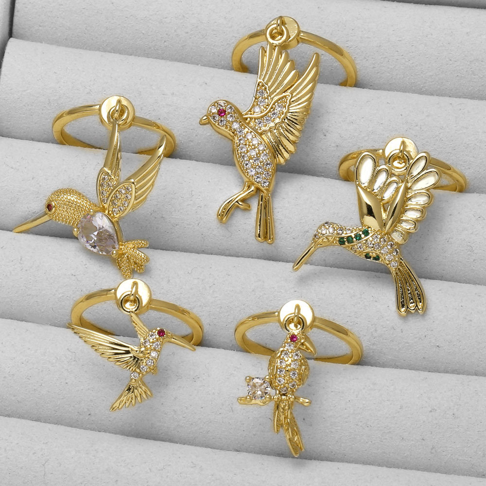 AS jewelry European and American popular bird ring copper plated real gold inlaid zircon ring ring ris63
