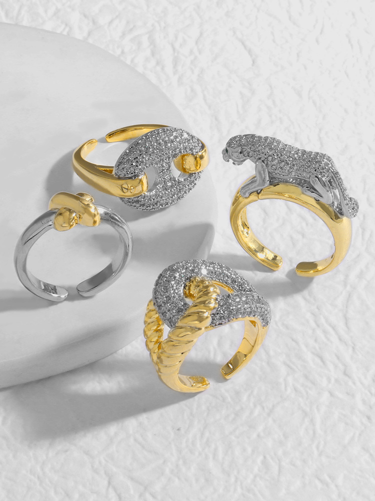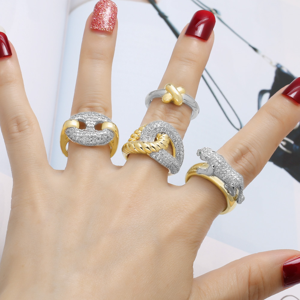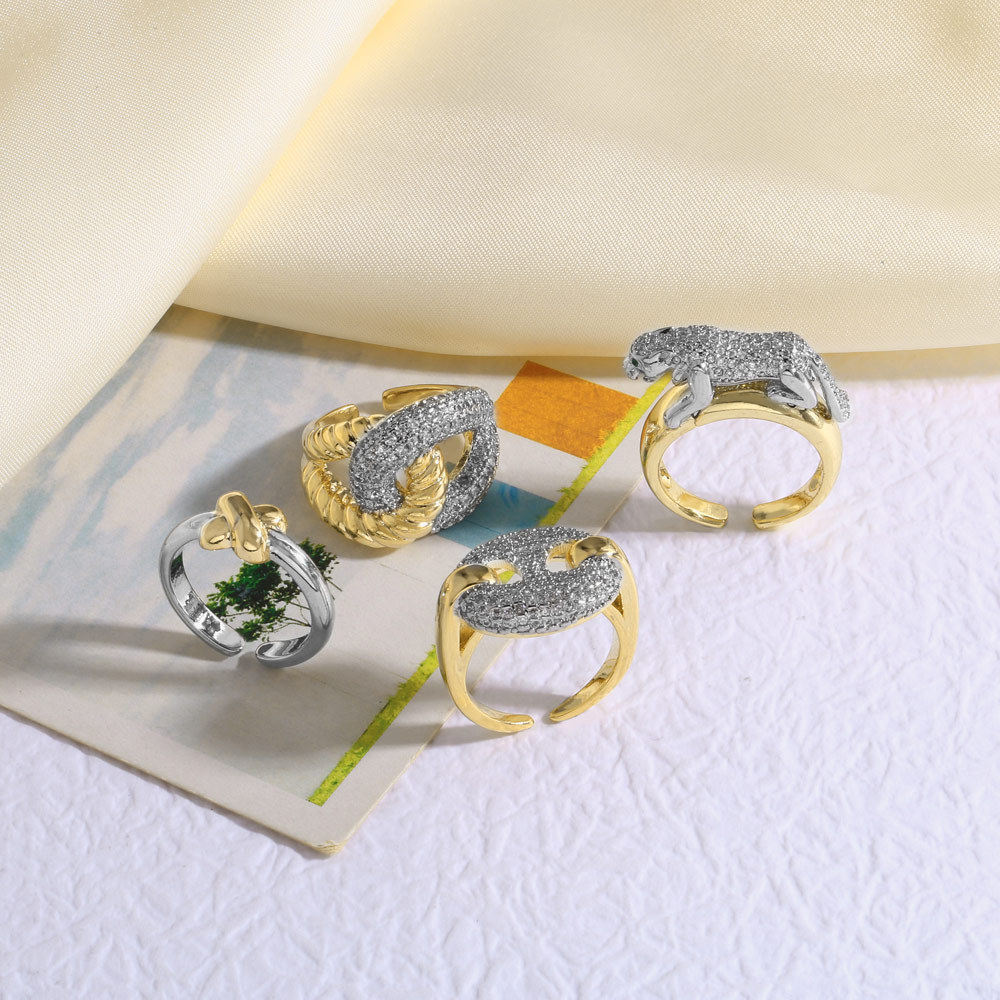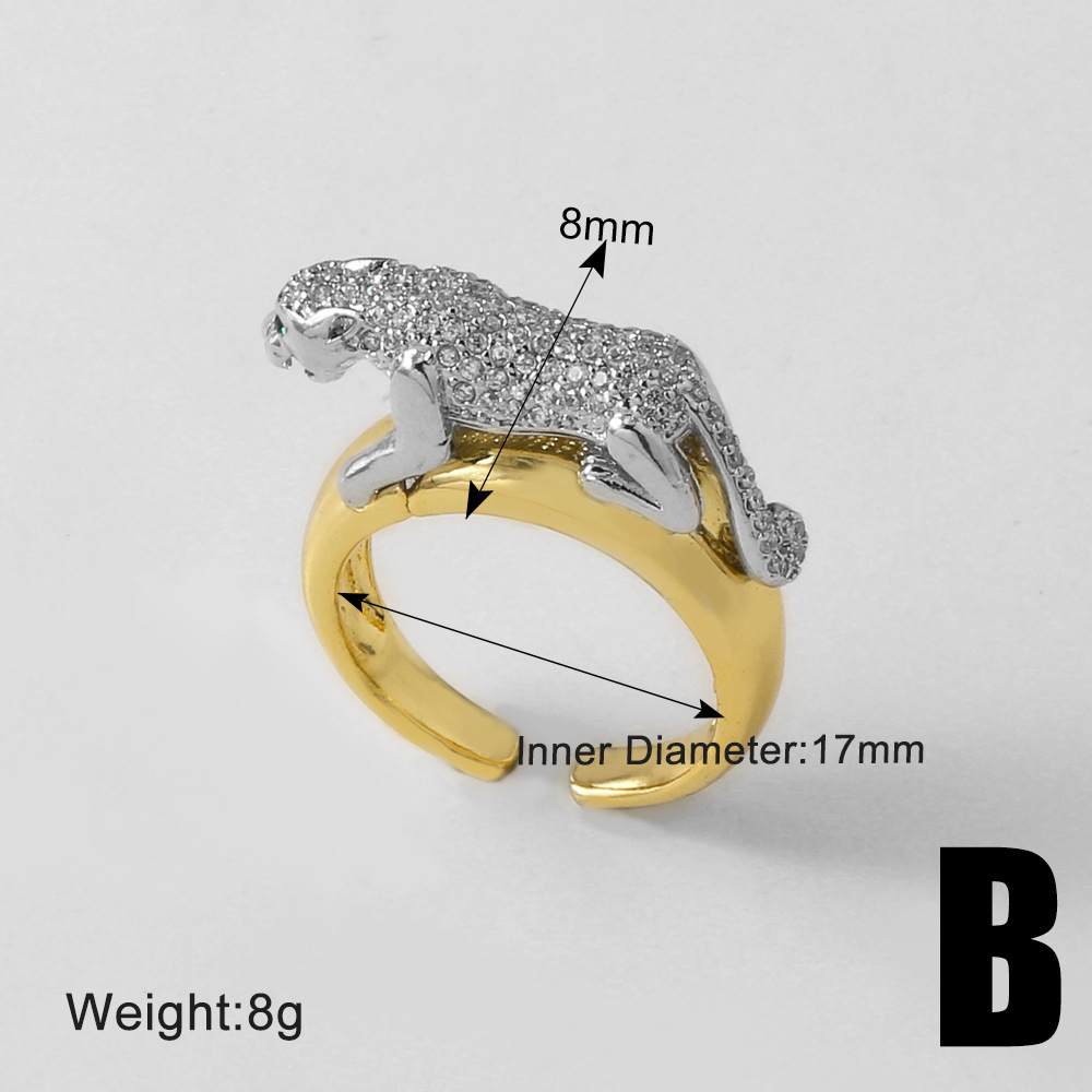 AS jewelry hot-selling two-color copper plated real gold leopard open ring inlaid with zircon ring rik58