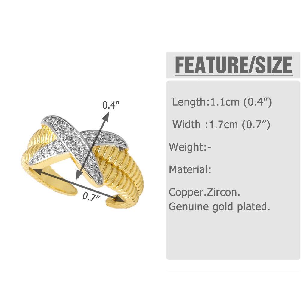 AS jewelry hot selling two-color cross open ring ring female gold-plated full zircon ring rih60