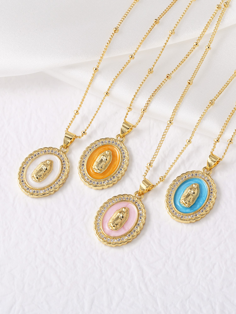 AS jewelry hot selling Virgin Mary pendant copper plated real gold necklace clavicle chain nkr35