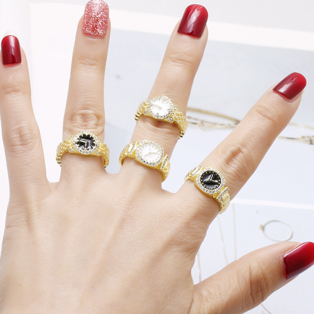 AS jewelry hot selling women's copper plated 18k gold drop oil gold watch open ring ring riq15