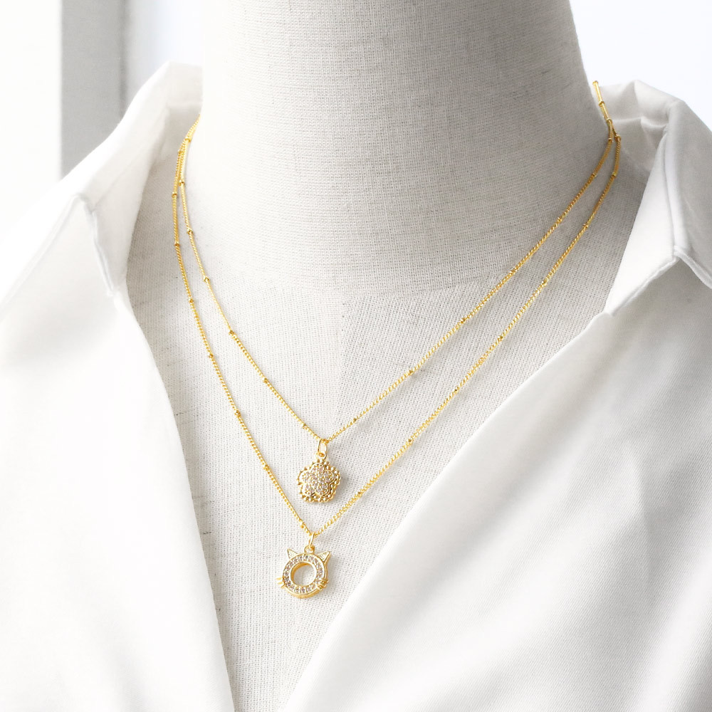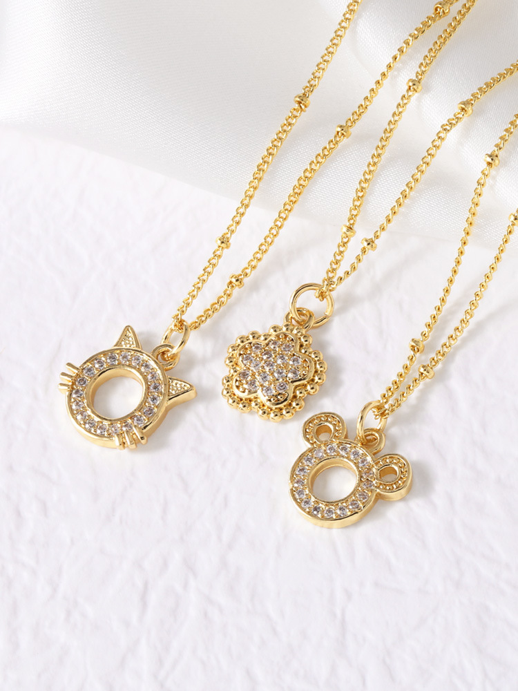 AS jewelry hot style full zircon flower kitten pendant necklace female gold-plated clavicle chain nku78