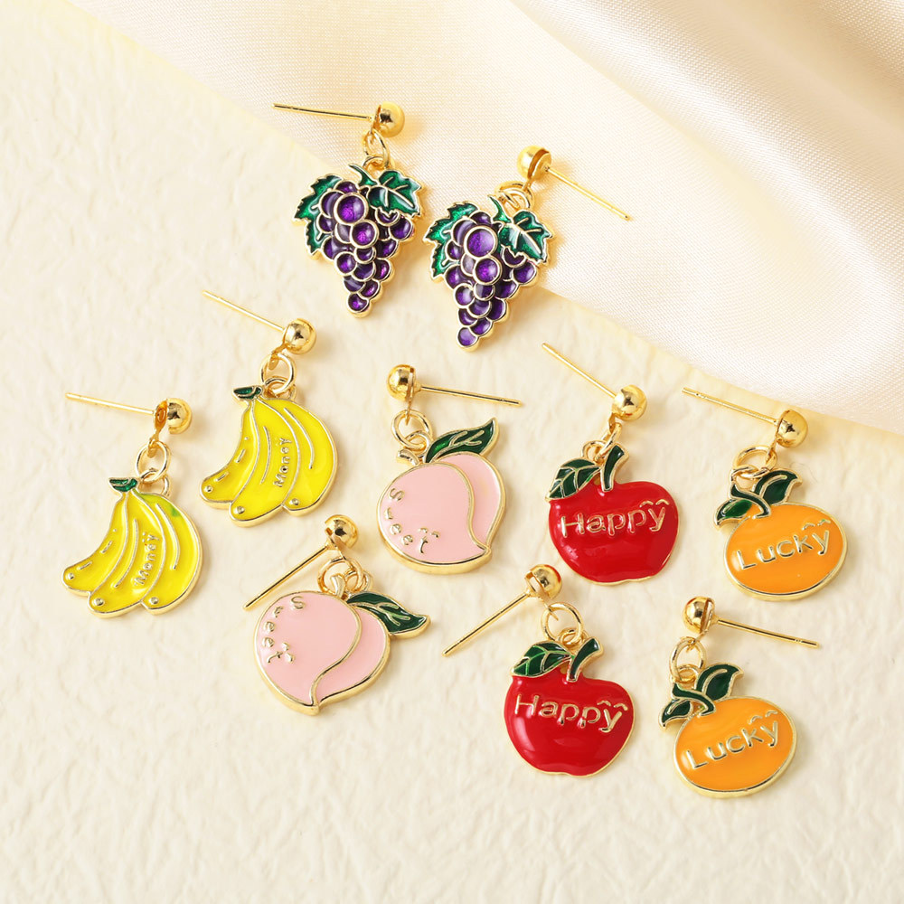 AS jewelry hot style oil dripping copper plated real gold fruit banana grape earrings female erv90