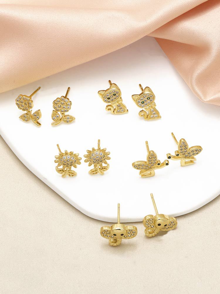 AS jewelry kitten elephant animal earrings gold-plated zircon flower earrings era358