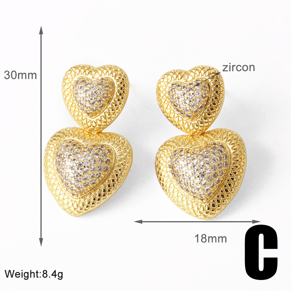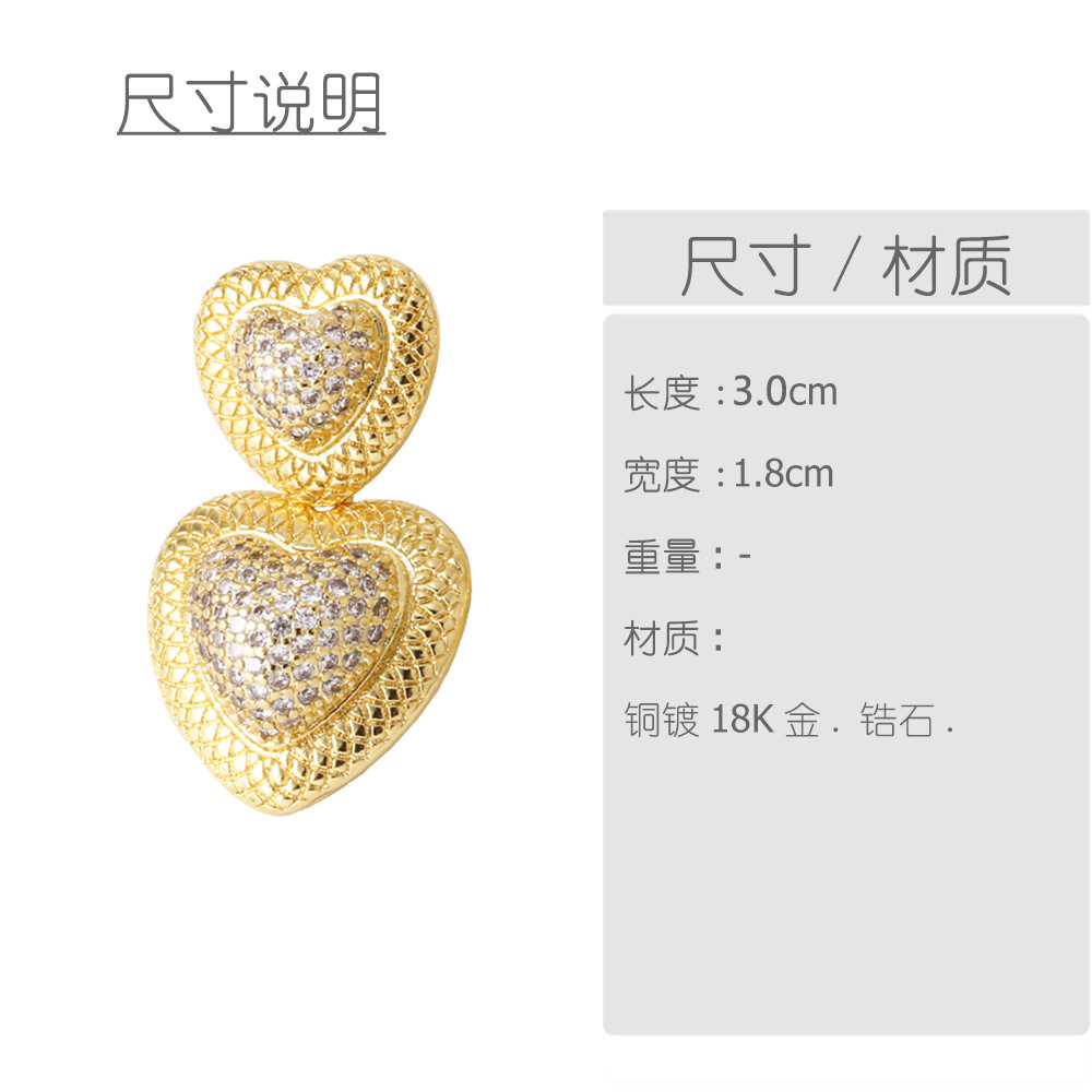 AS jewelry love earrings female copper plated 18k gold heart-shaped full zircon earrings era347