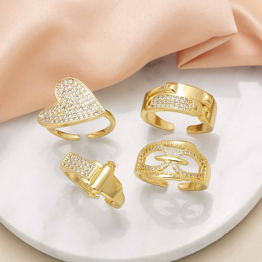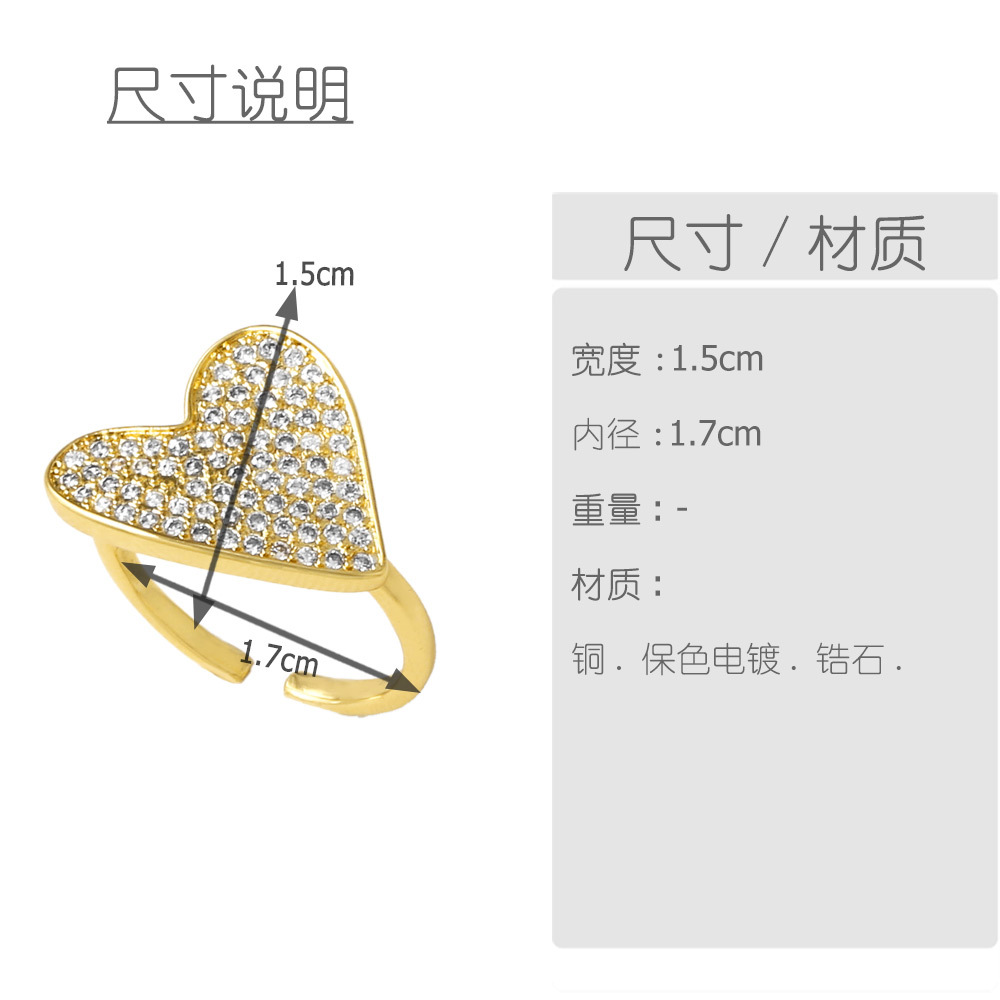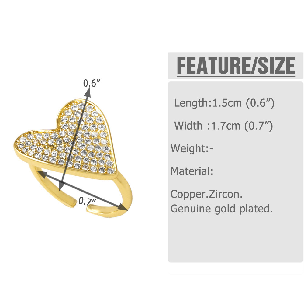 AS jewelry love heart irregular ring gold-plated full zircon open ring rih67