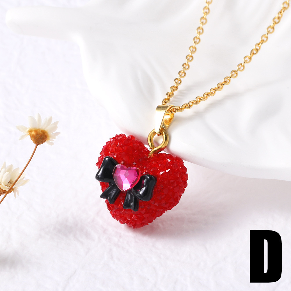 AS jewelry love heart-shaped bow pendant necklace gold-plated peach heart sweater chain nkb555
