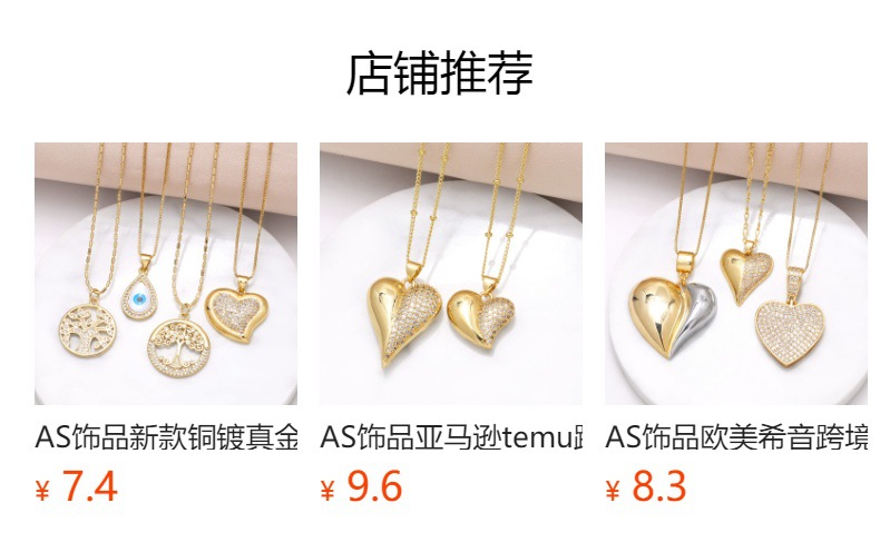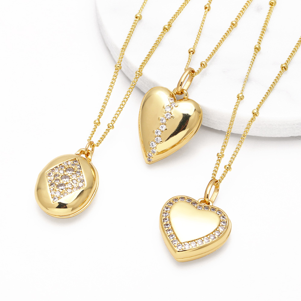 AS jewelry love pendant necklace copper plated real gold inlaid zircon heart clavicle chain nkb431