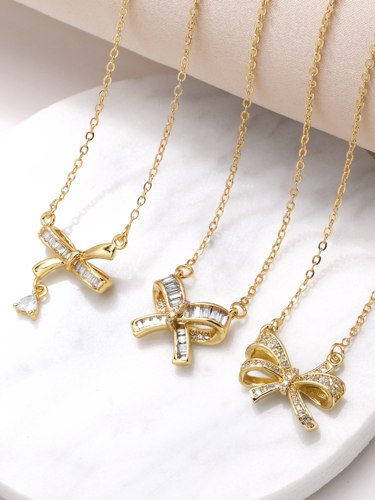 AS jewelry necklace bow pendant necklace gold-plated zircon Mother's Day clavicle chain nkw63