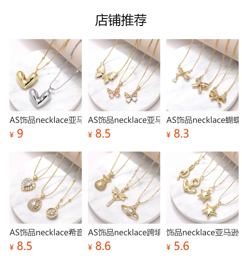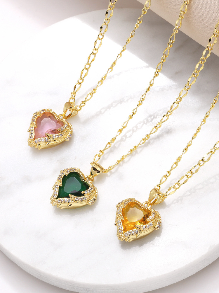 AS jewelry necklace love pendant necklace gold-plated colored zircon clavicle chain nkw98