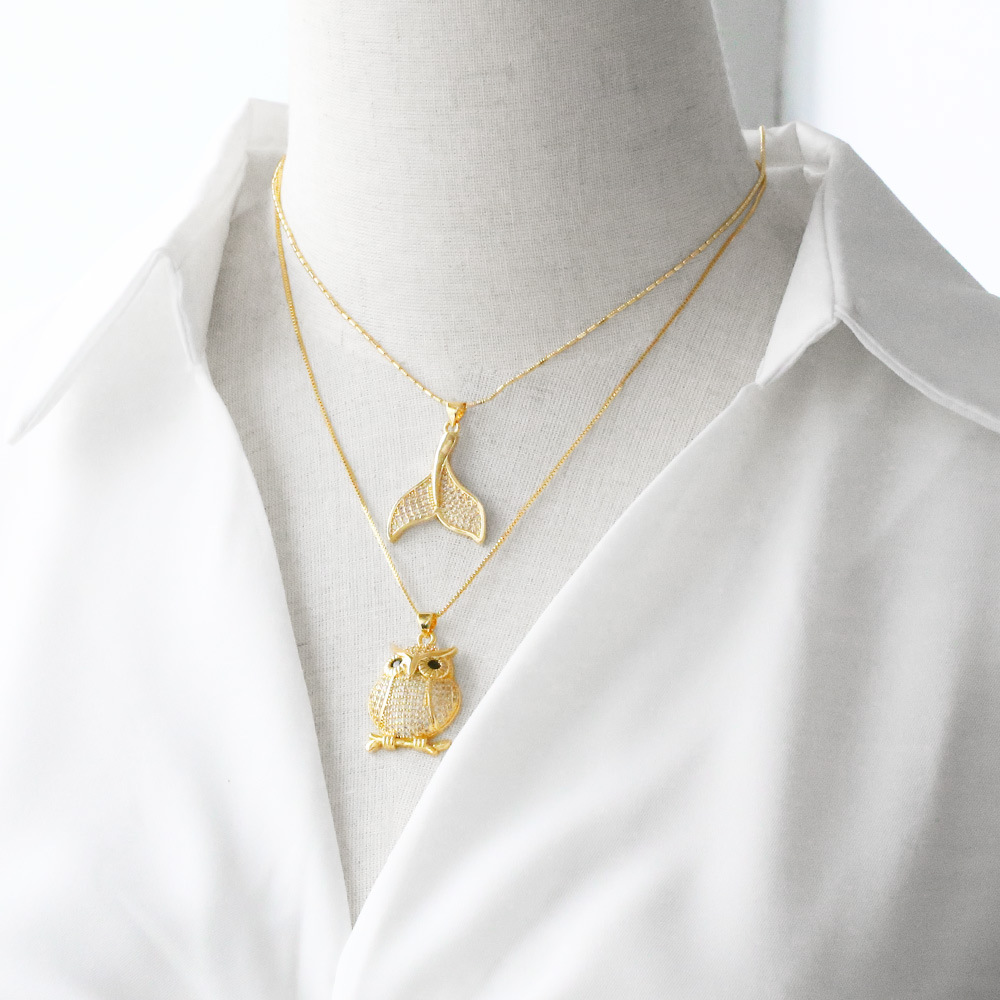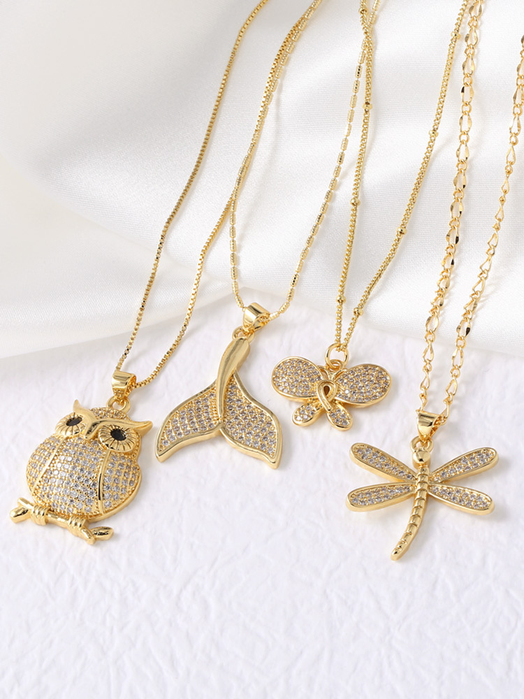 AS jewelry new butterfly owl pendant necklace female copper plated 18k gold dragonfly clavicle chain nkb202