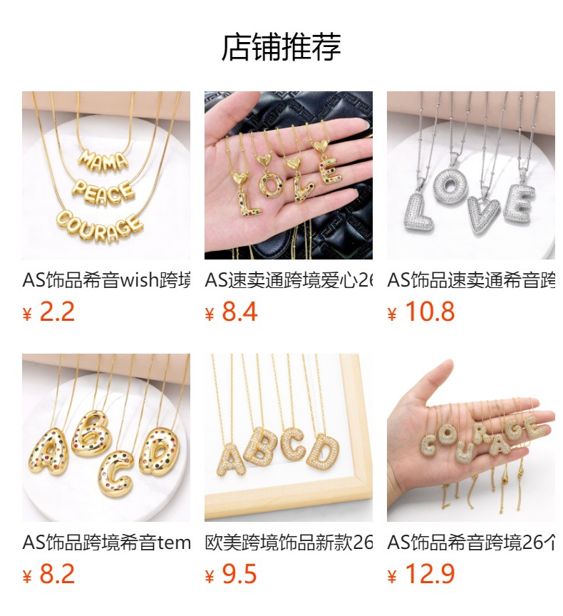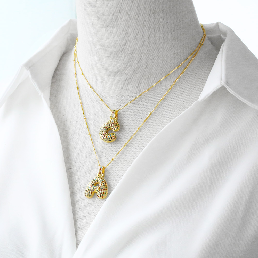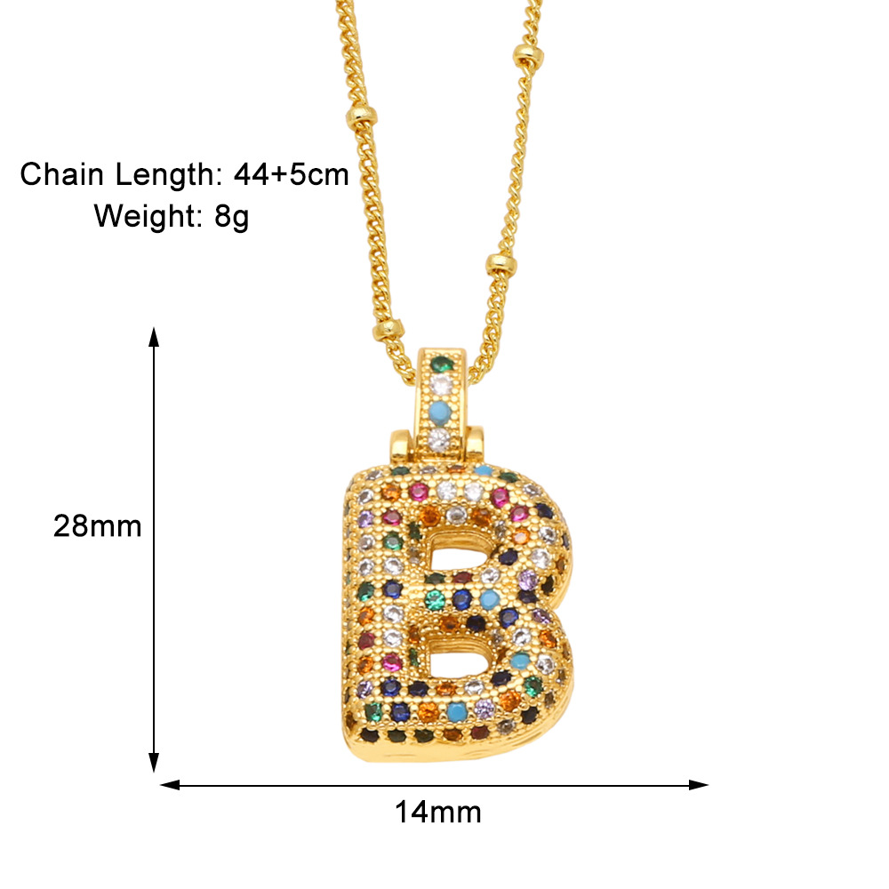 Letter necklace European and American new color zircon necklace with diamond surname English AZ letter necklace nkp25