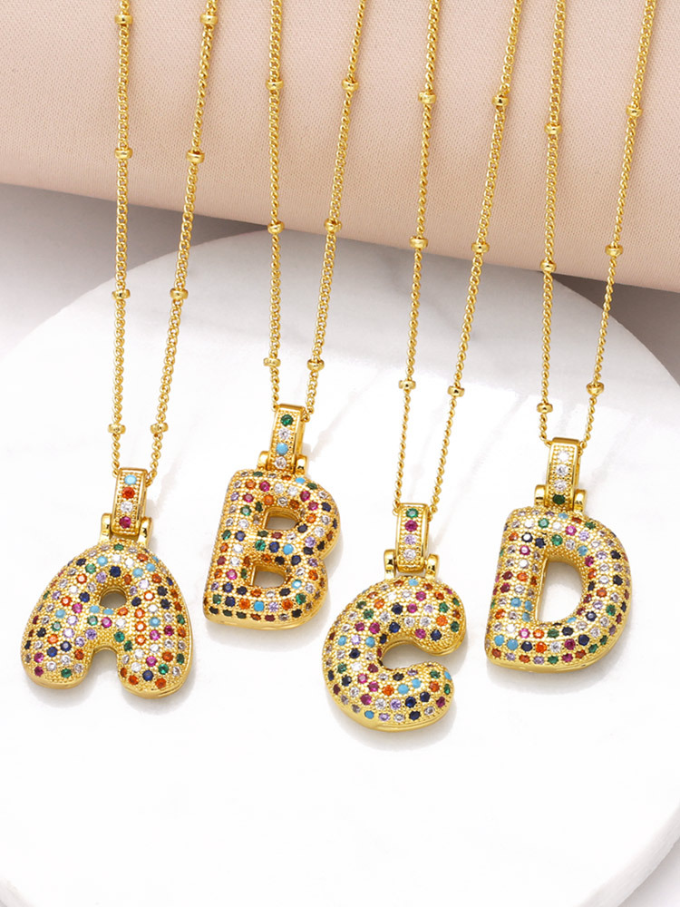 Jewelry new hot selling colored zircon 26 English letters pendant necklace gold-plated clavicle chain nku83