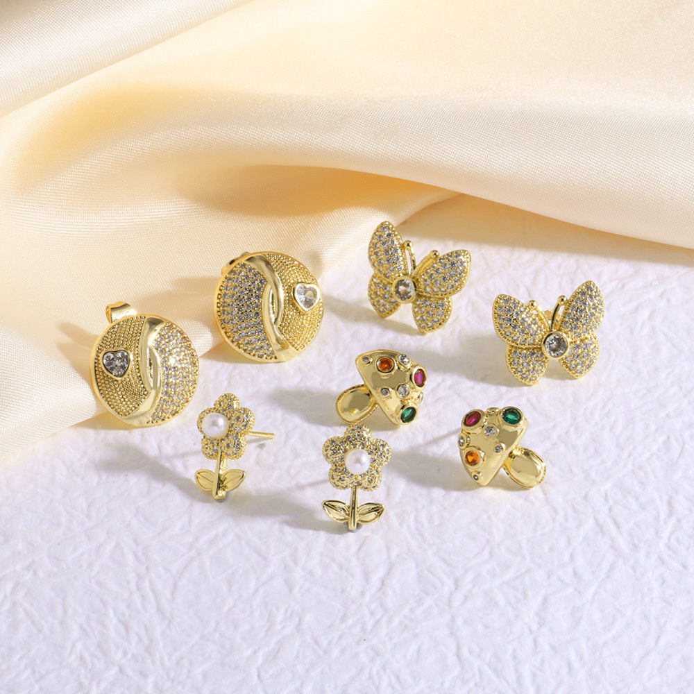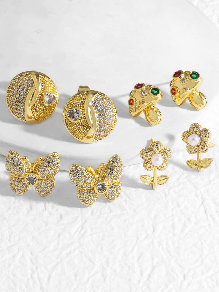 AS jewelry new copper plated 18k gold butterfly mushroom flower earrings earrings ers87 earrings