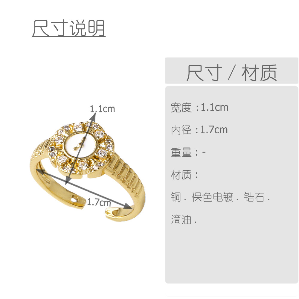 AS jewelry new copper plated 18k gold clock watch open ring ring rih80 ring