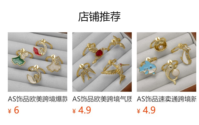 AS jewelry hot selling teardrop-shaped full zircon bird pendant ring ring female ris05 ring