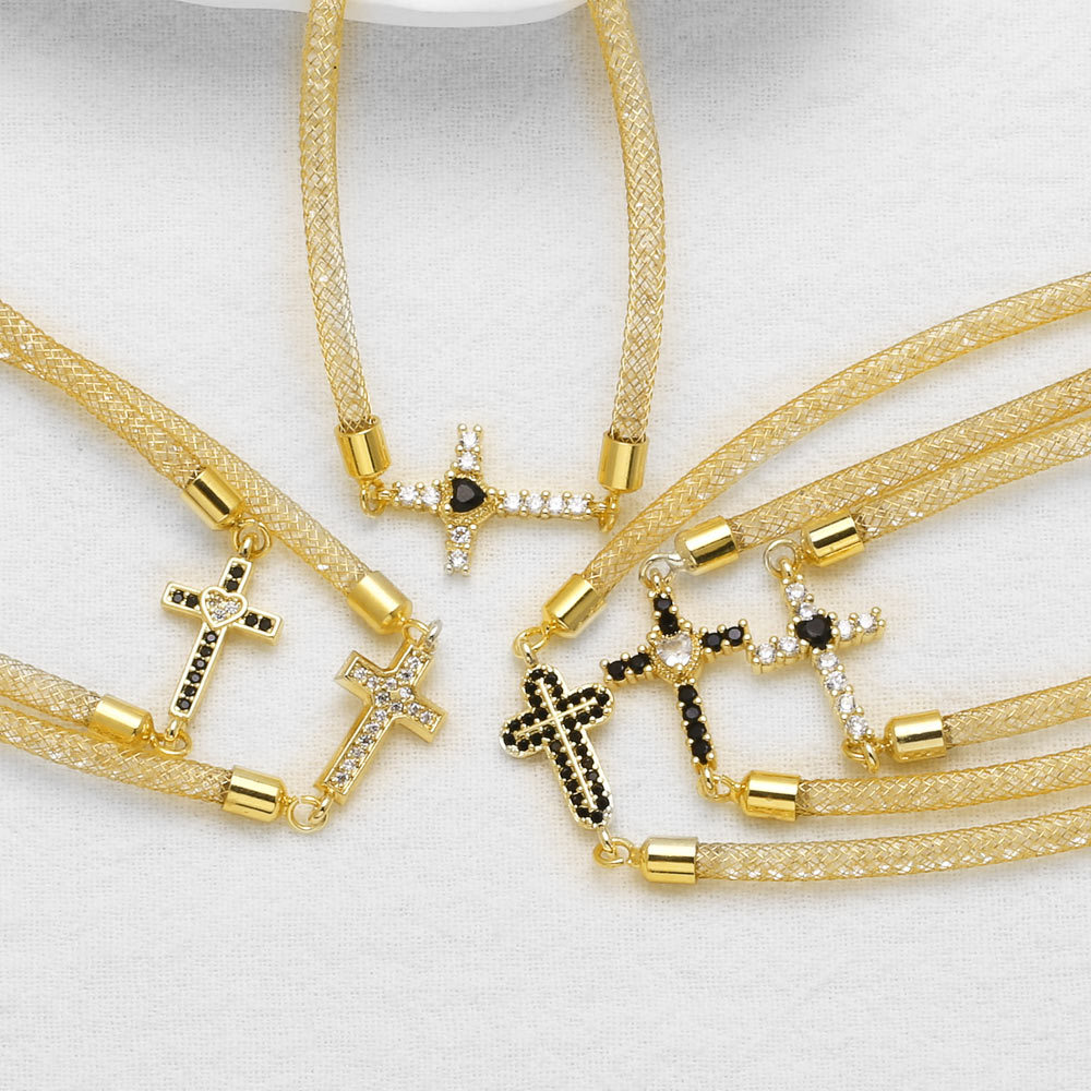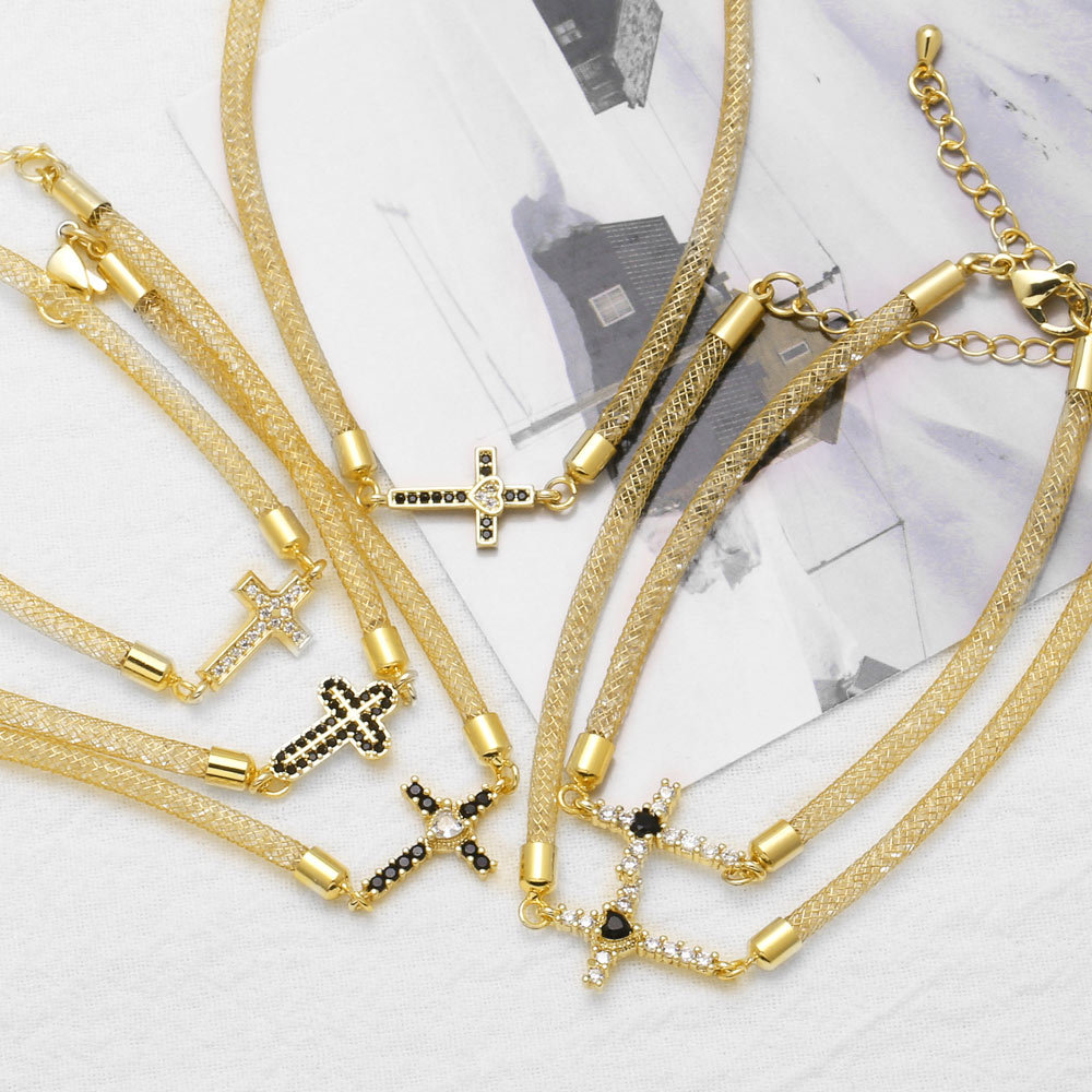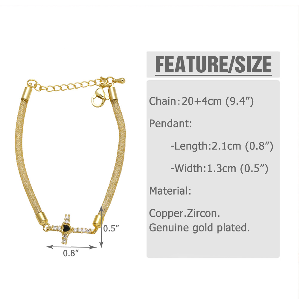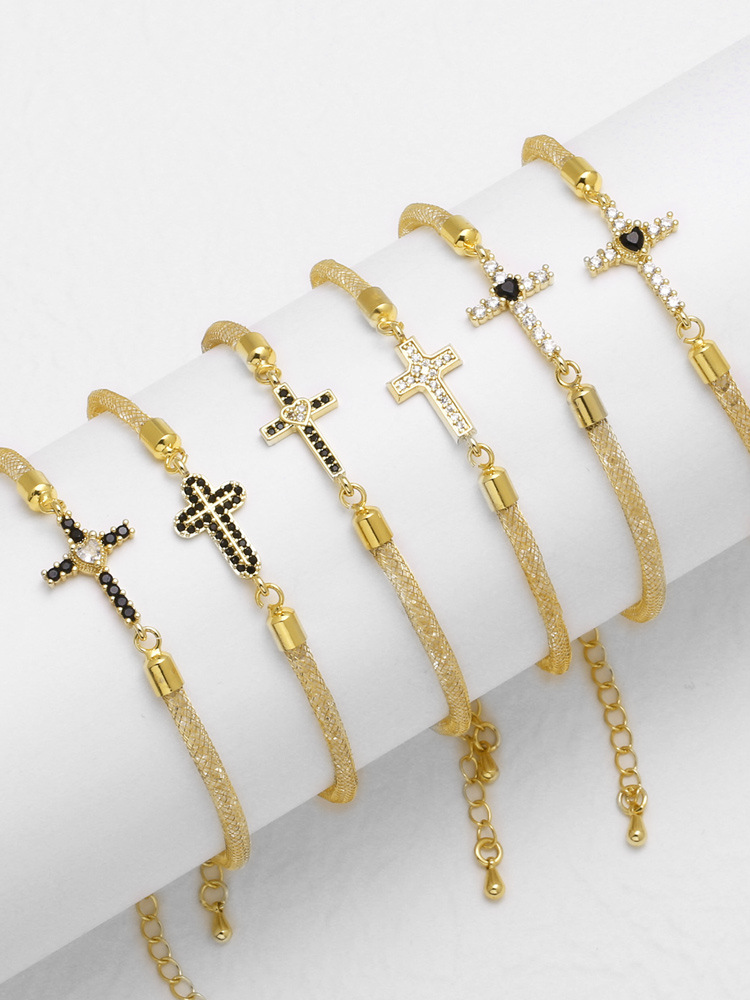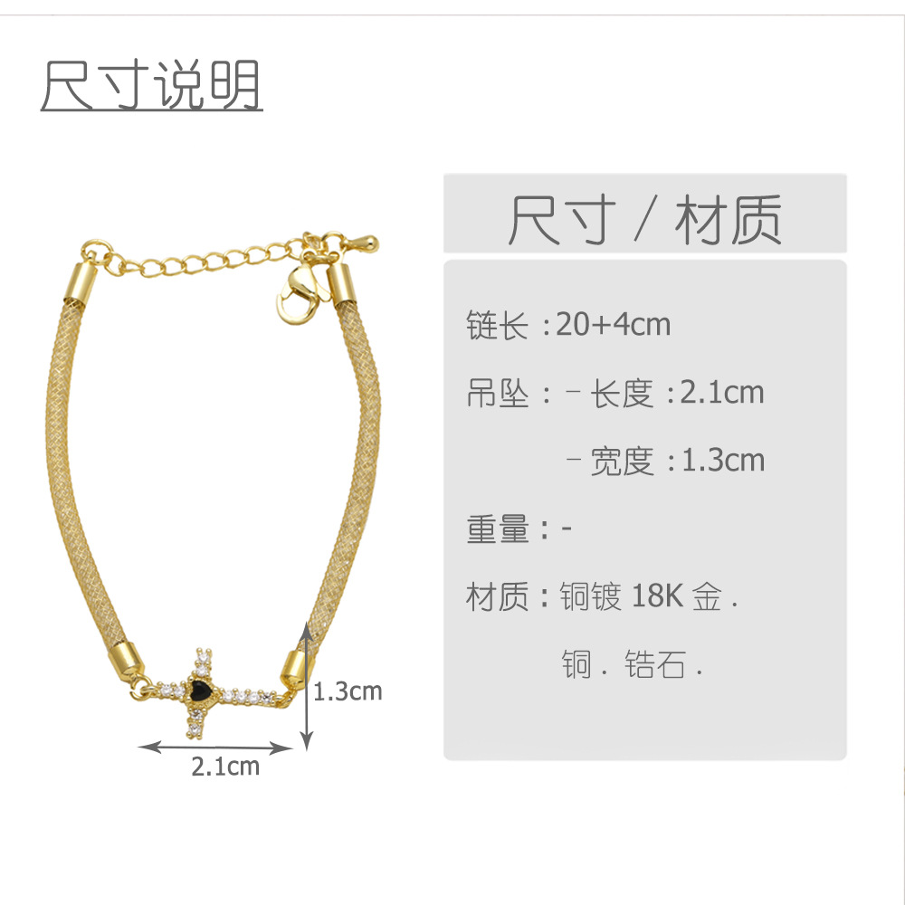 AS jewelry new copper plated 18k gold inlaid zircon cross pendant bracelet hand jewelry female bre21