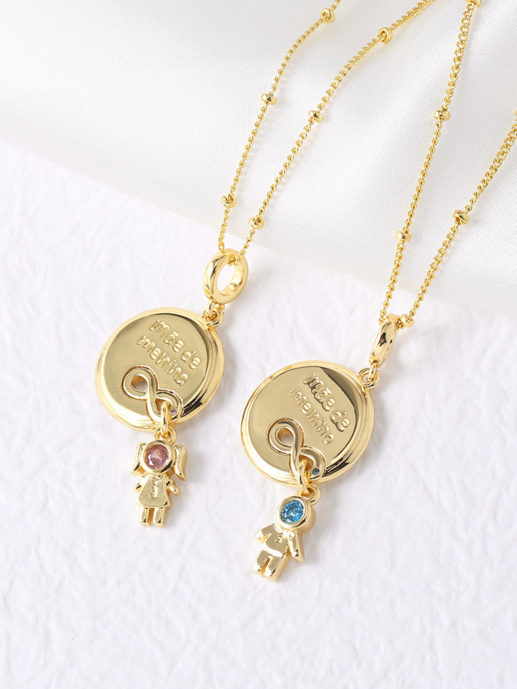 AS jewelry new copper plated 18K gold zircon boy girl pendant necklace couple clavicle chain nka022
