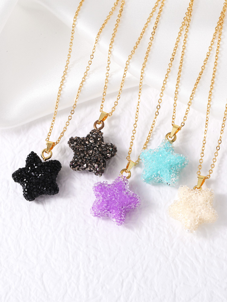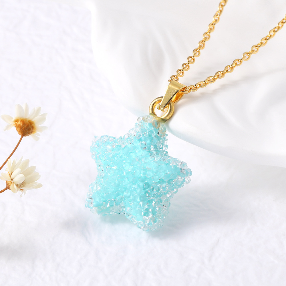 AS jewelry new European and American hot selling colorful five-pointed star pendant necklace gold-plated star clavicle chain nkb280