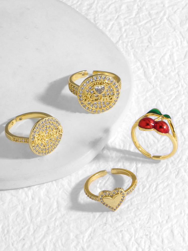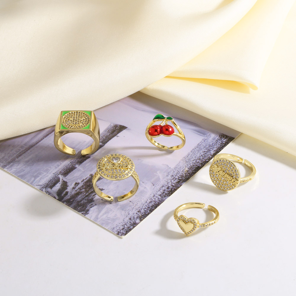 AS jewelry new full zircon fruit cherry love open ring ring rir25 ring